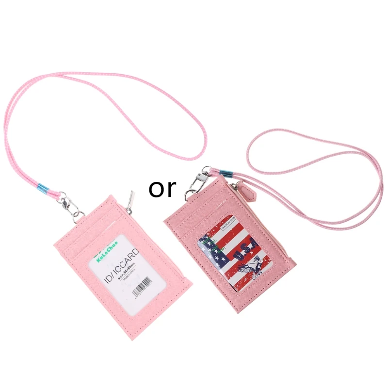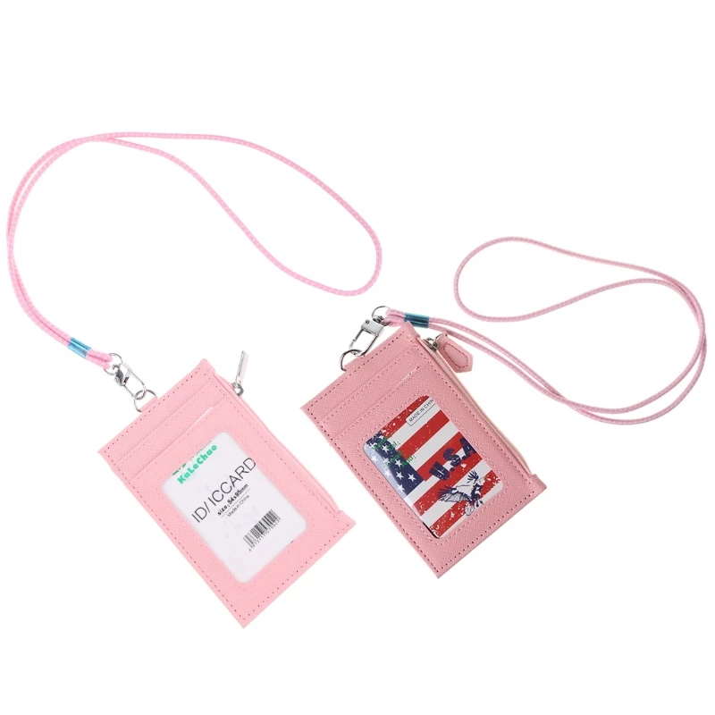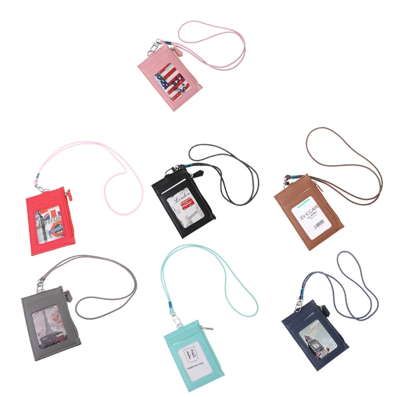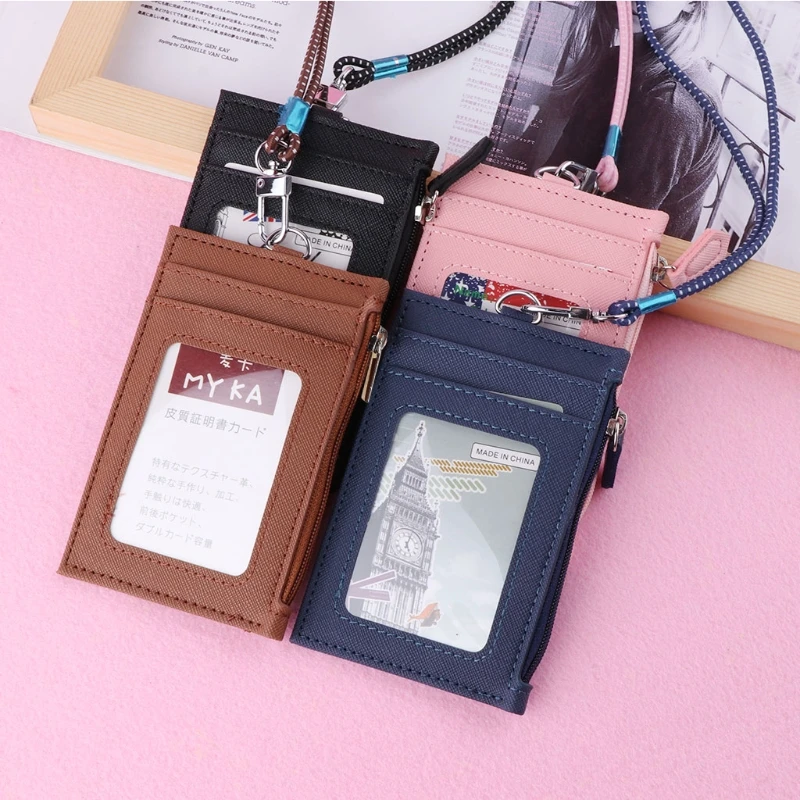 Кошелек из искусственной кожи для мужчин и женщин, кредитница для визиток, чехол с ремешком на шею, тонкий модный Миниатюрный держатель для карт