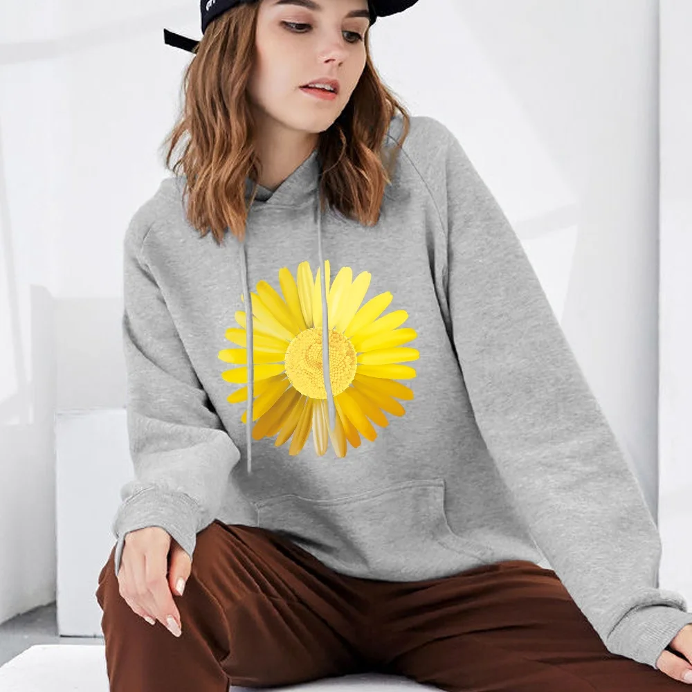 Повседневные женские толстовки с принтом маргариток пуловеры с капюшоном весна осень махровая парная модная уличная одежда Удобная Толстовка для подростков