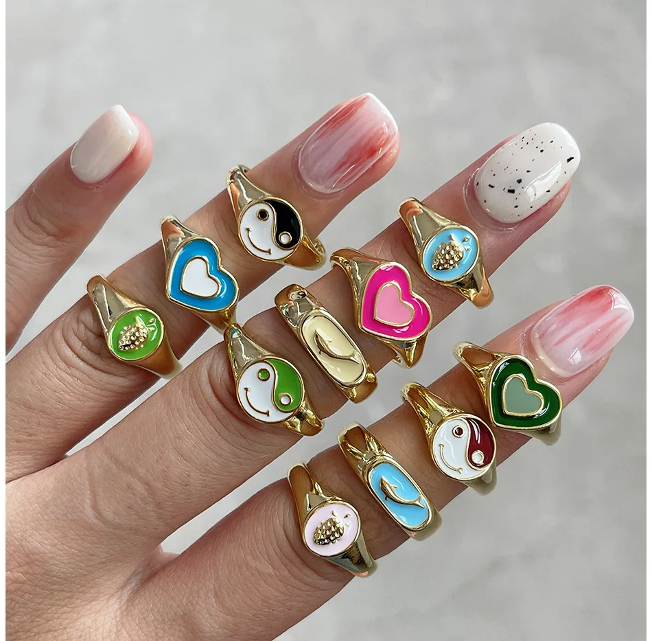 Новинка, Винтажное кольцо с улыбающимся сердцем в стиле Instagram, ...