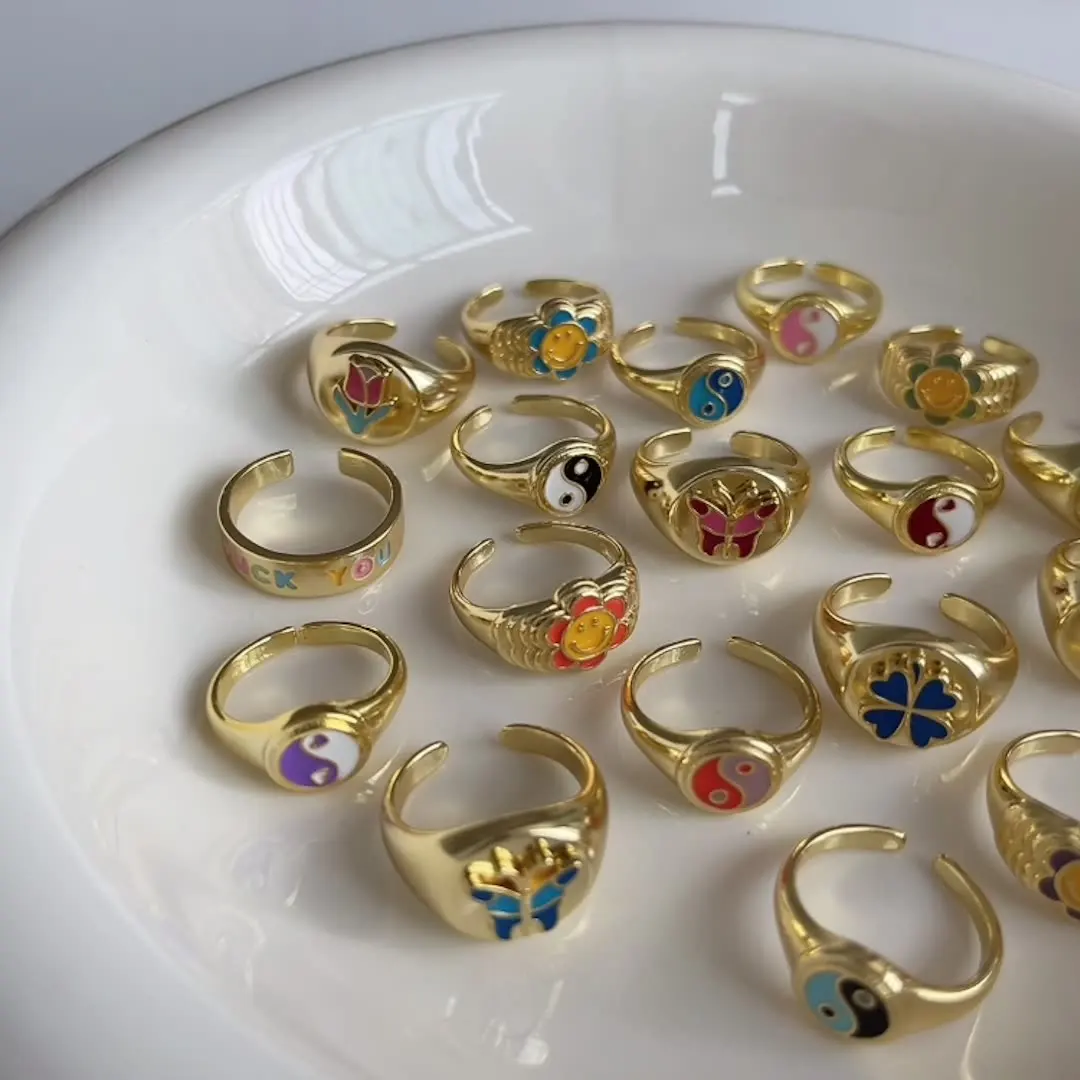 Smiley TaiChi кольца для женщин забавное креативное кольцо на палец регулируемое кольцо в стиле хип-хоп трендовая уличная Женская бижутерия идеальный подарок