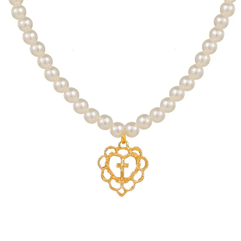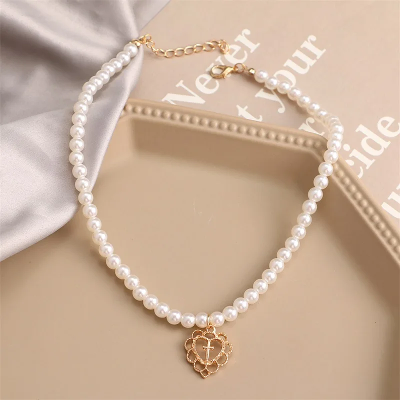 Винтажный милый кулон в форме сердца ожерелье для женщин Золотая цепочка ожерелья жемчужное колье 2021 тренд элегантные свадебные украшения