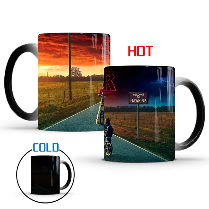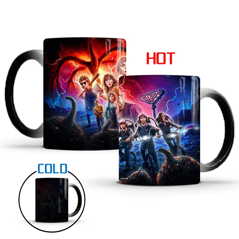 Новинка, кофейные молочные чашки очень странные дела, 350 мл, 1 шт., чашки для напитков с более горячей водой, меняющие цвет, детский подарок для друзей