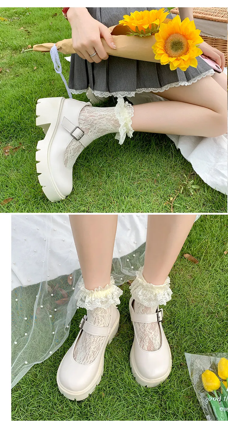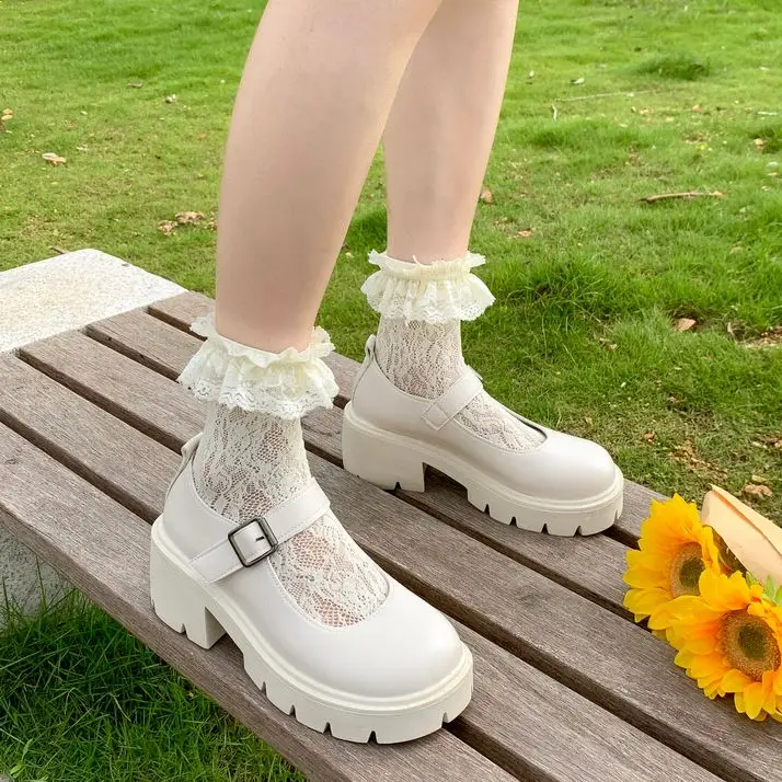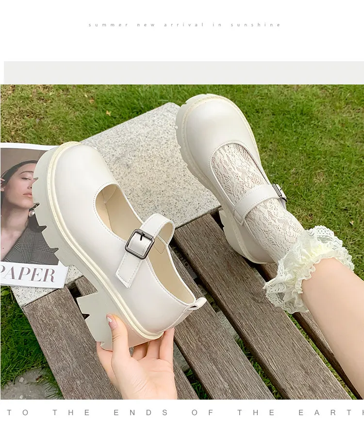 Женские Туфли Мэри Джейн, винтажные туфли на платформе и высоком каблуке в японском стиле, Лолита, Студенческая обувь для колледжа, бежевые