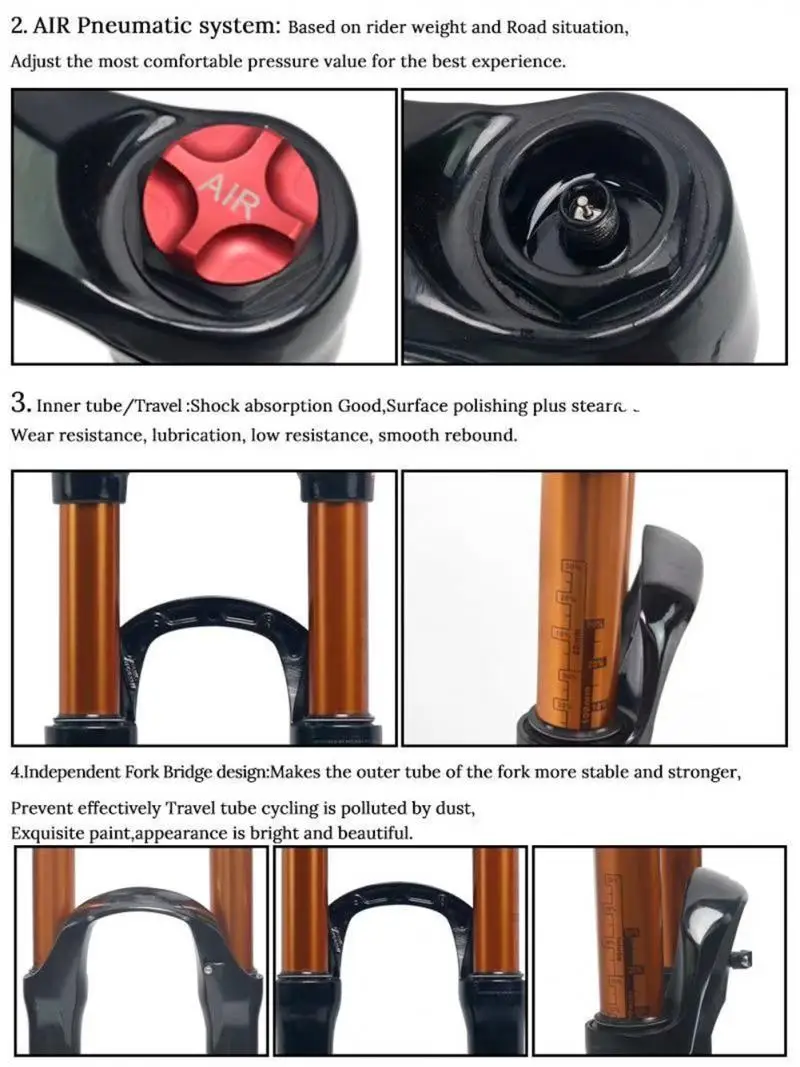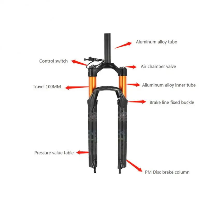 Передняя вилка для велосипеда, 26 дюймов, 27,5 дюйма, 29 дюймов, пневматическая амортизационная вилка для дискового тормоза