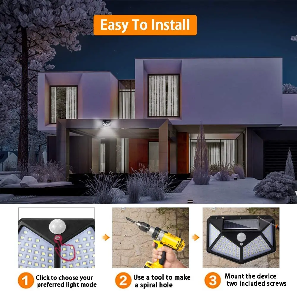 Настенный светильник на солнечной батарее, 100 светодиодов, 3 режима, датчик движения