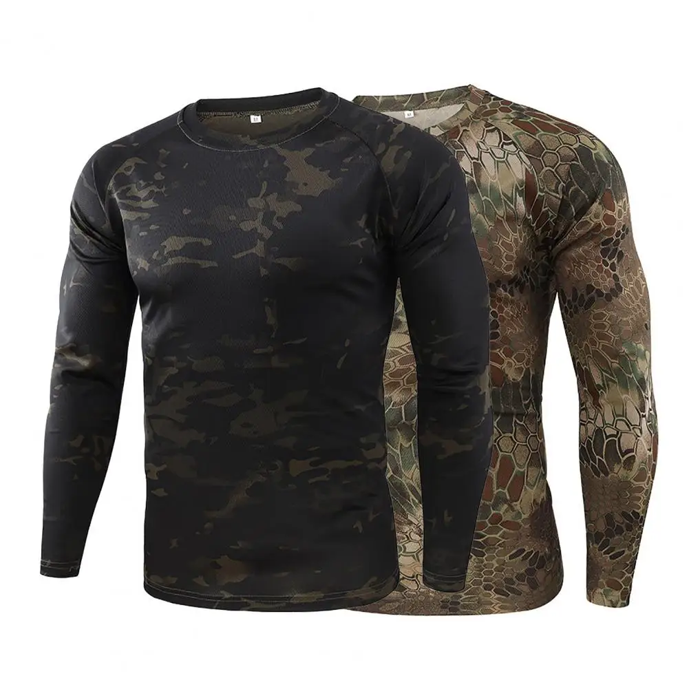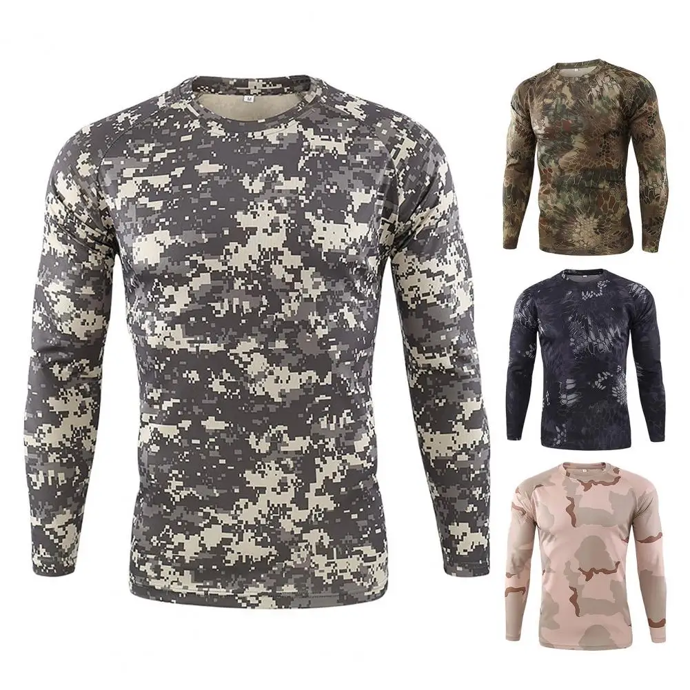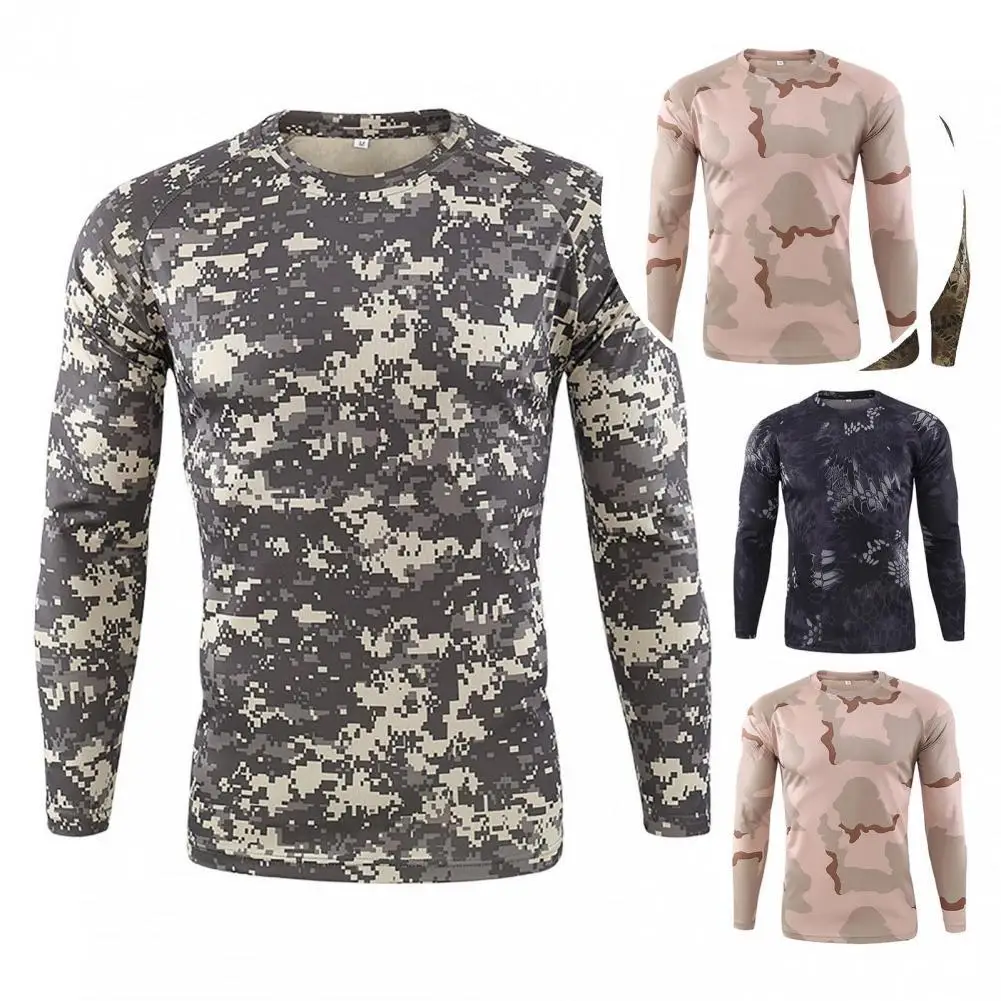 Тактические камуфляжные Футболки с длинным рукавом Мужские дышащие ...