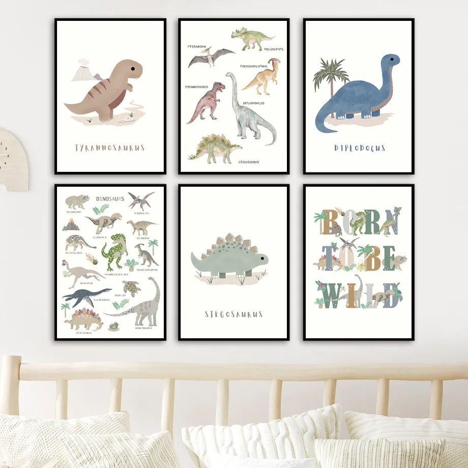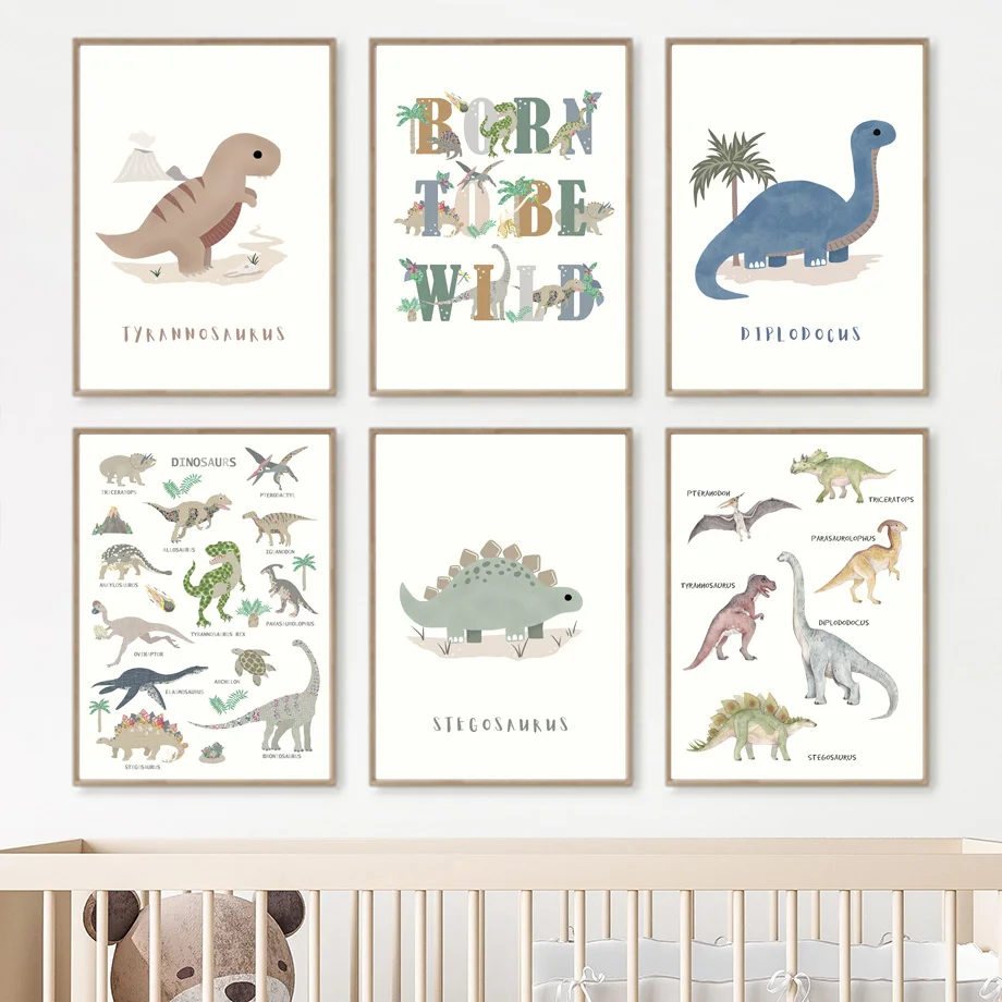 Бохо динозавр алфавит мультфильм питомник мальчик девочка стены художественный Принт Холст Картина скандинавский плакат Настенные фотографии для детской комнаты декор