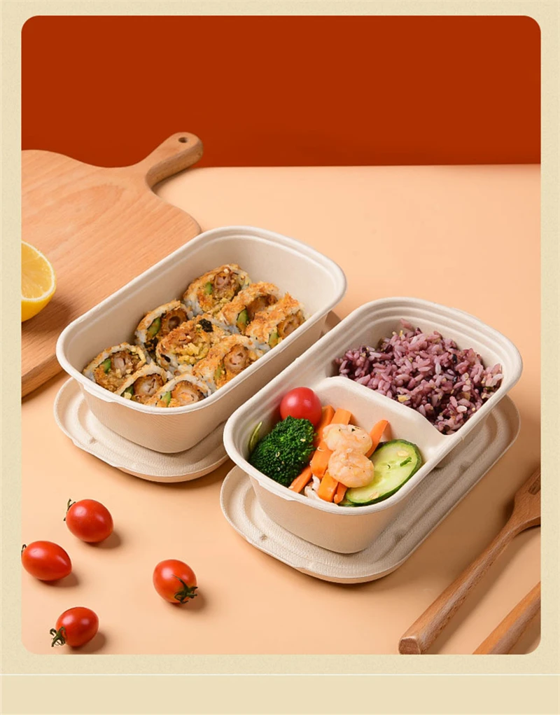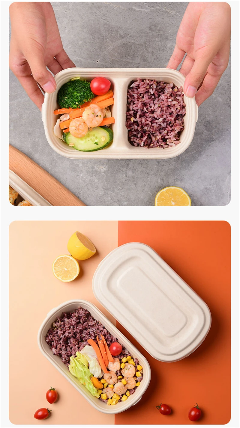 Одноразовый ланч-бокс, биоразлагаемый контейнер для еды в микроволн...