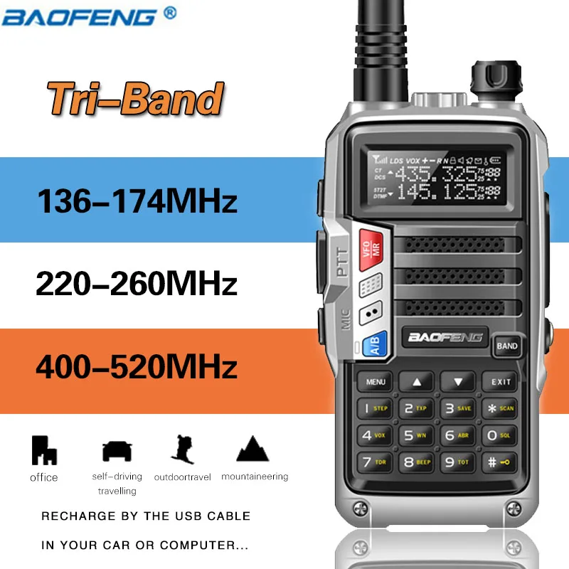 Трехдиапазонное радио BaoFeng UV-S9 8 Вт Высокая мощность 136-174 МГц220-260 МГц400-520 МГц рация Любительская портативная Любительская Двусторонняя радиостанция