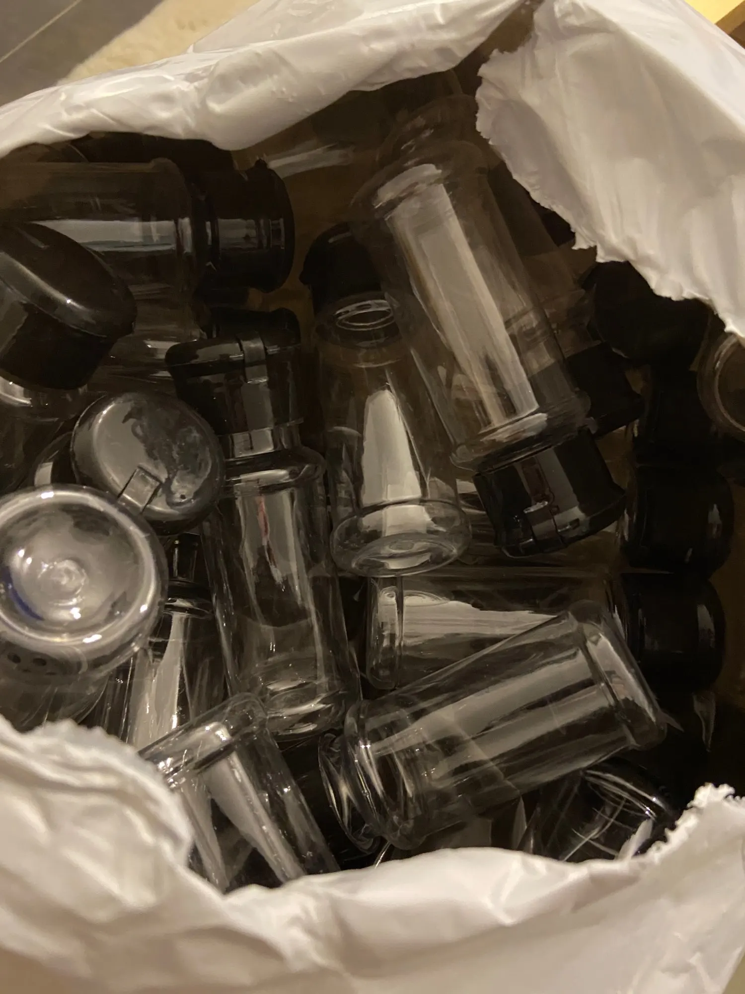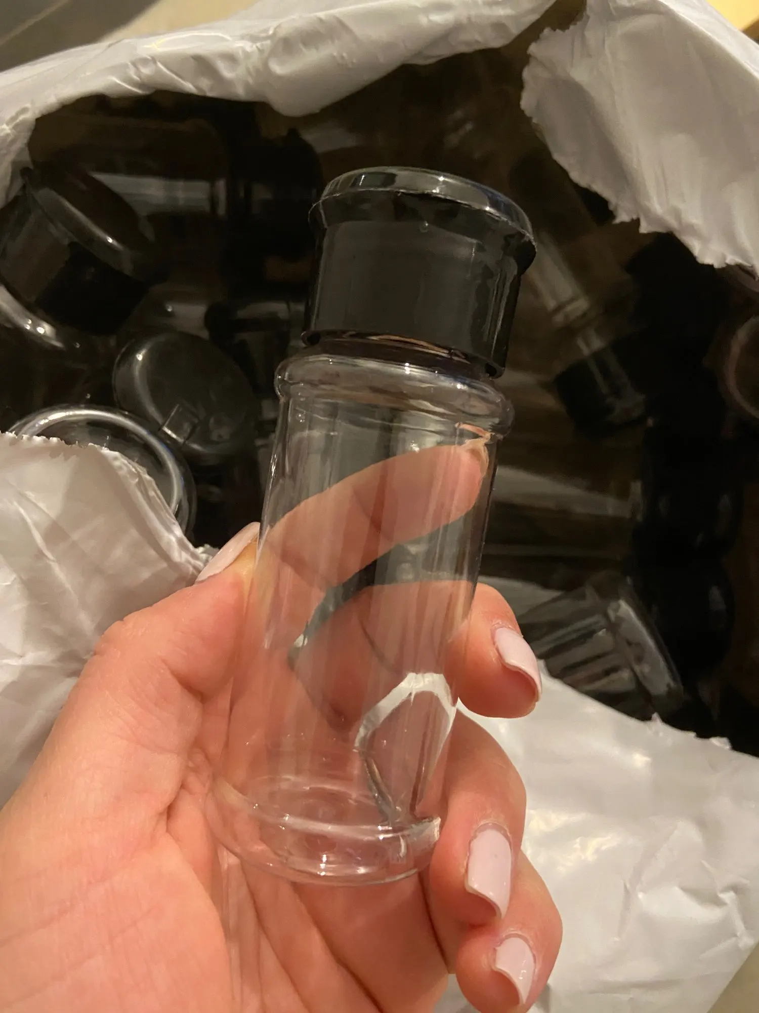 Баночки пластиковые, очень легкие, заказывал 20 шт, пришло 21, спасибо за бонус. Дырки в крышках лучше бы сделать поменьше - великоваты. Размер оптимальный. В целом вроде нормально всё.