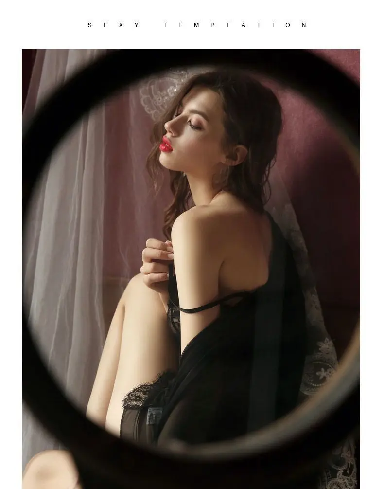 Женская кружевная ночная рубашка, милый костюм-тройка на бретельках с глубоким V-образным вырезом, сексуальная ночная рубашка с бантом, Прозрачная Кружевная работа, горячая Пижама для женщин