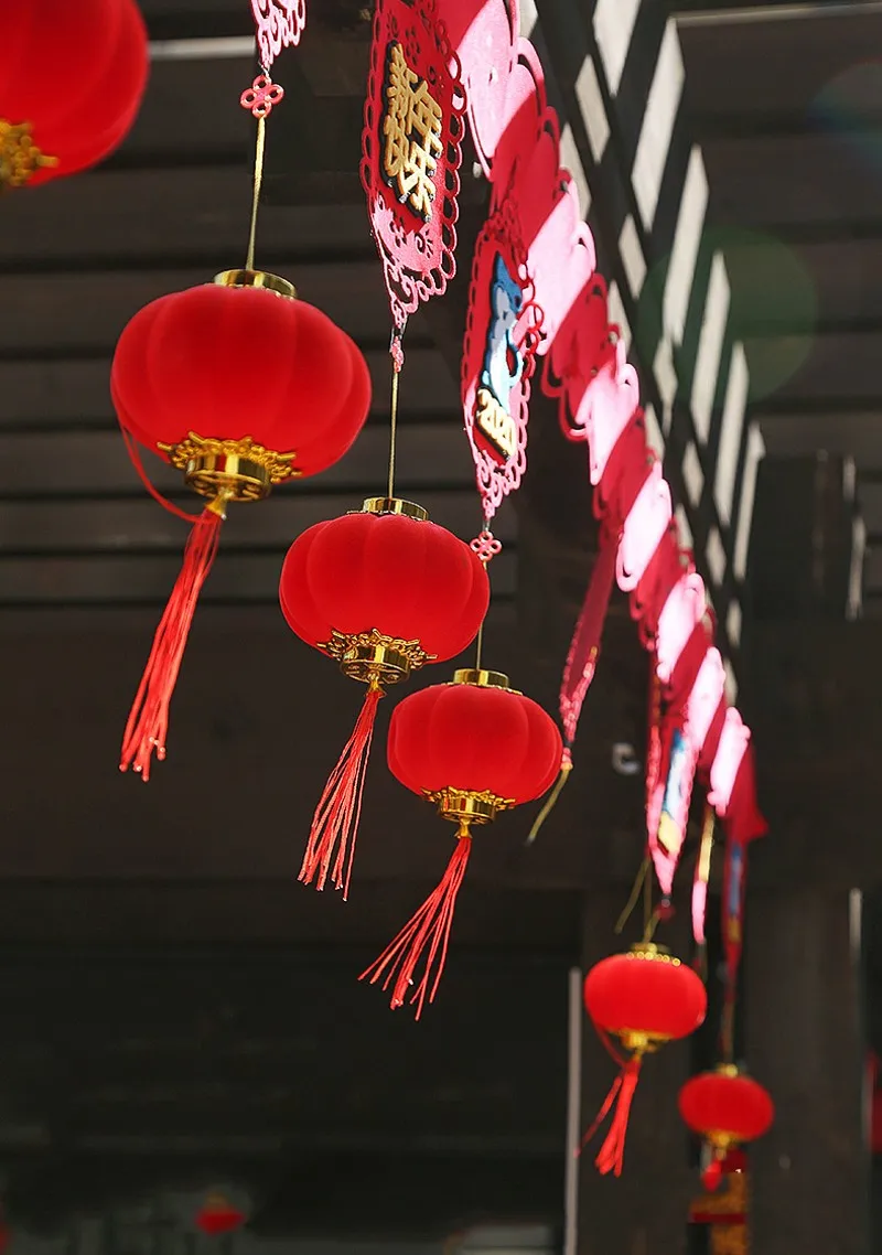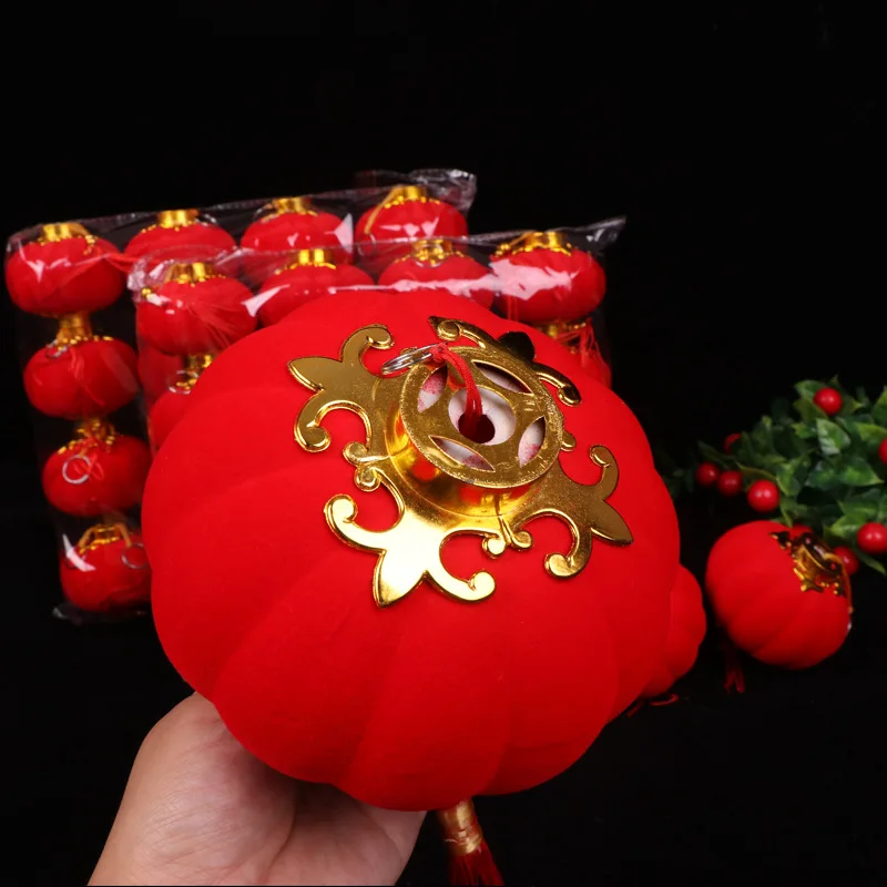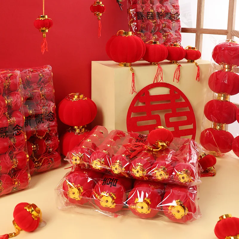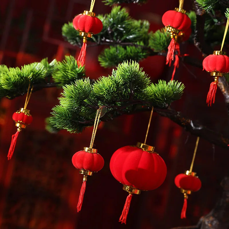 Флокированные красные фонари, подарок сделай сам, милая китайская Искусственная елка, новогодний декор, праздник вечерние праздник, домашний декор, 2030 шт.