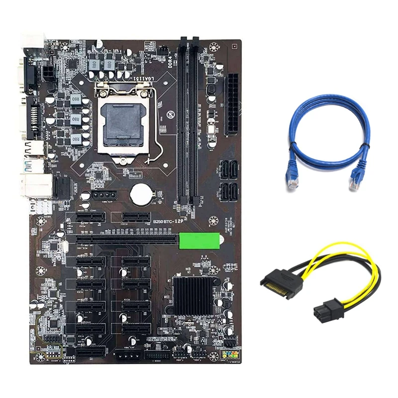 B250 BTC горная материнская плата с SATA 15Pin до 6Pin кабель + RJ45 кабель 12XGraphics слот для карты LGA 1151 DDR4 USB3.0 для BTC