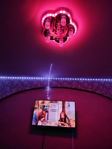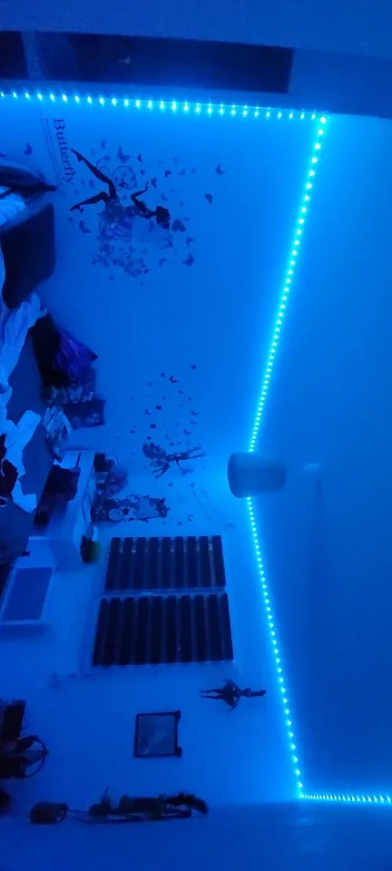 Лента не супер насыщенная, но в целом хорошая. Взяла 3 метра, для одной стены, но провод слишком короткий и подключить его к удлинителю не удалось. Обклеила зеркало, решила, что закажу ещё, но уже гораздо длиннее, чтобы обклеить весь потолок.