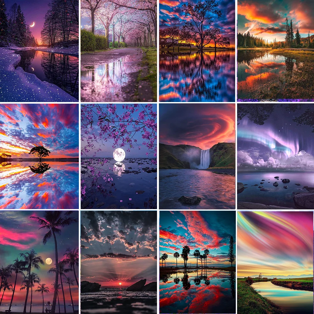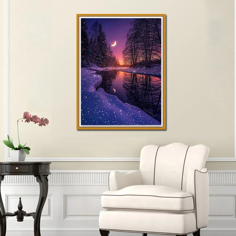 Алмазная 5d-картина сделай сам с пейзажем, Луна и дерево, полноразмерная Алмазная вышивка, мозаика, вышивка крестиком Аврора, украшение для дома, подарок