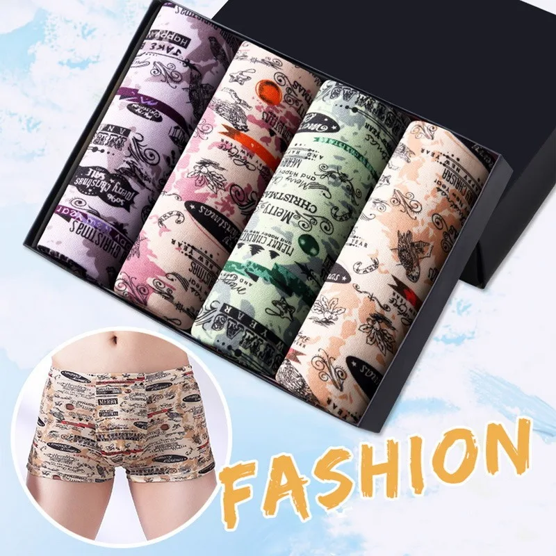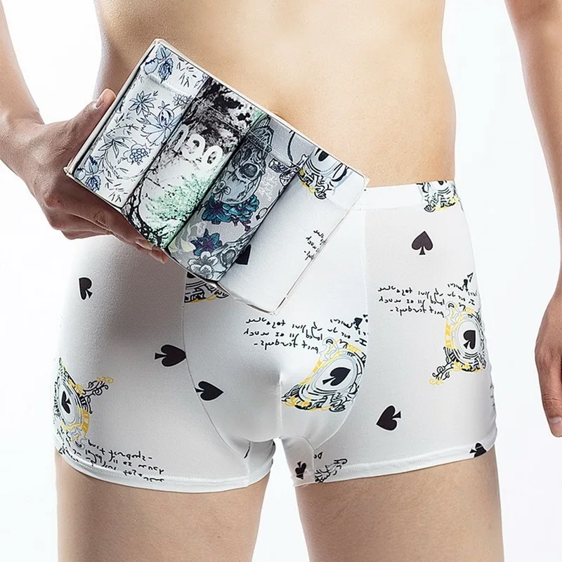 4 шт., дышащие Бесшовные трусы-боксеры с принтом перьев