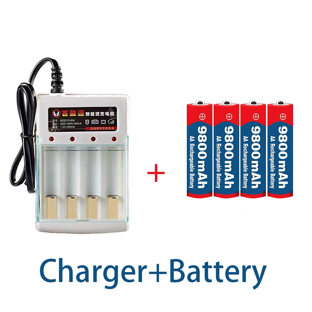 Новая бирка, AA батарея 9800 мАч, перезаряжаемая батарея AA 1,5 В. Перезаряжаемые Новые щелочные барабанные + 1 шт. 4-элементное зарядное устройство