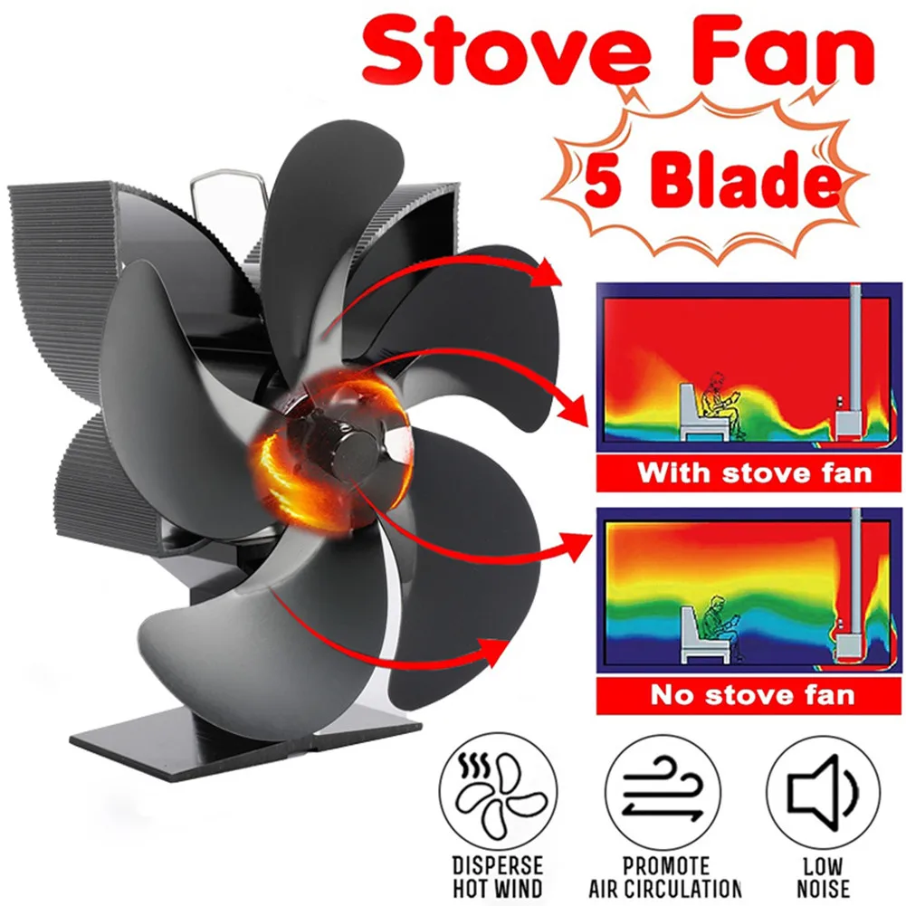 Тепловой вентилятор для камина с 5 лопастями, отопительный вентилятор для дровяных печей, эффективный обогреватель воздуха, домашнее Отопление для камина