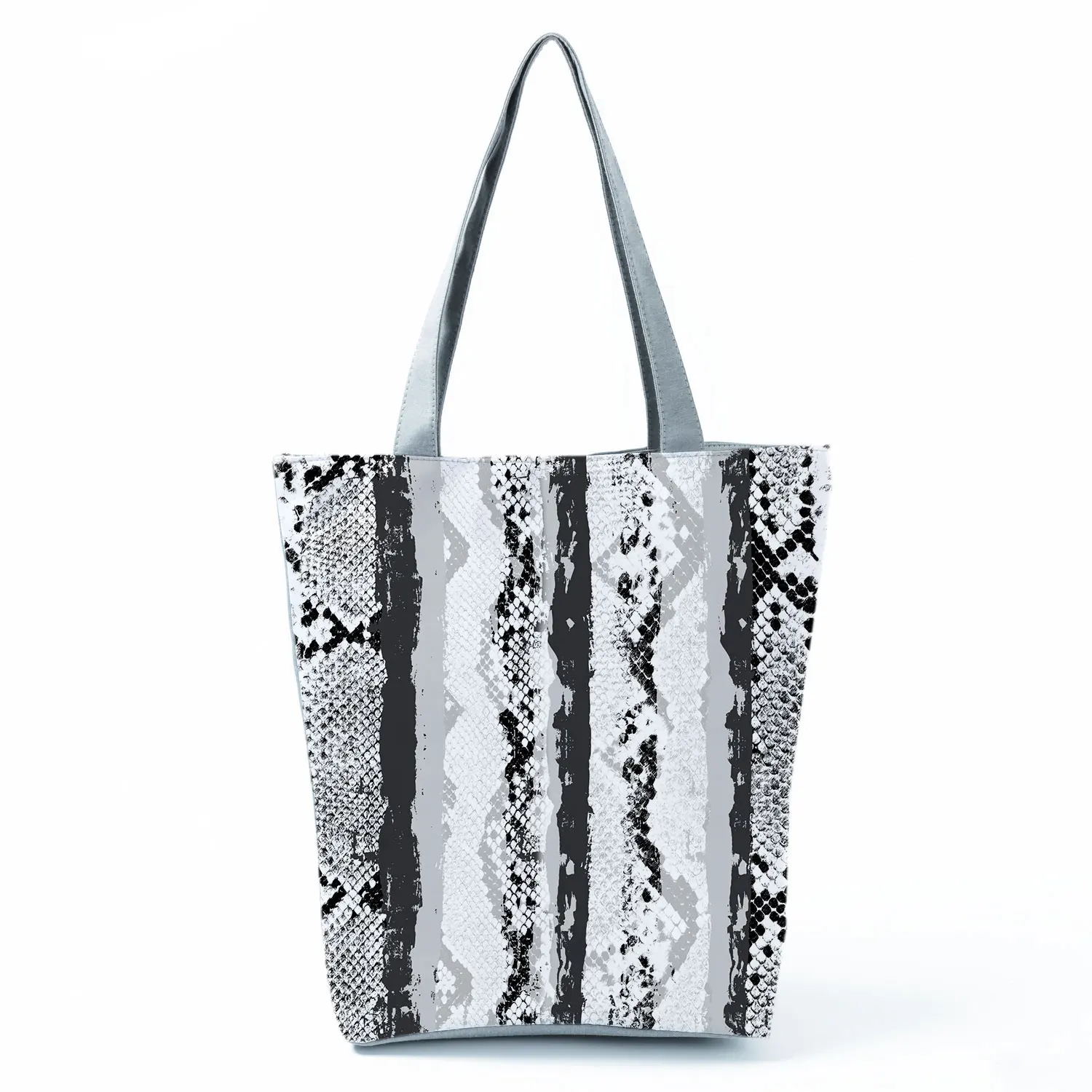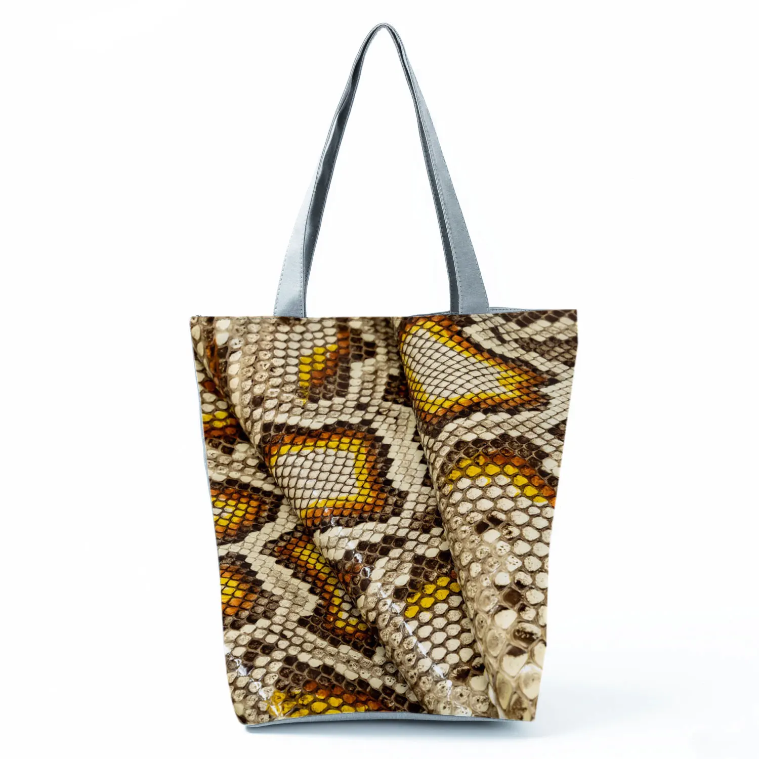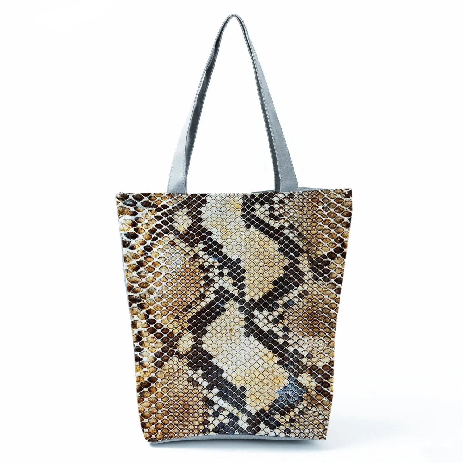 Женская сумка-тоут с леопардовым принтом со змеиным принтом, повседневная школьная сумка, дорожная сумка через плечо, многоразовые сумки-шопперы для супермаркета