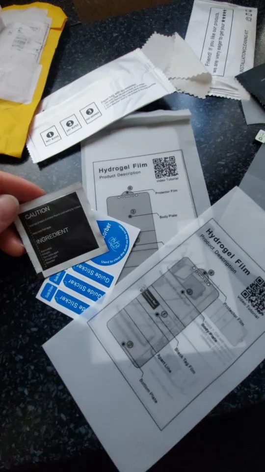 Сегодня я получил свою посылку. Я был приятно удивлен. Пленки идеально упакованы отдельно. Кроме того, в комплект входят 3 спиртовые салфетки и Карта Для Вытирания воздуха при наклеивании пленки. Все это упаковано в коробку из пены. Мне очень понравилось.
