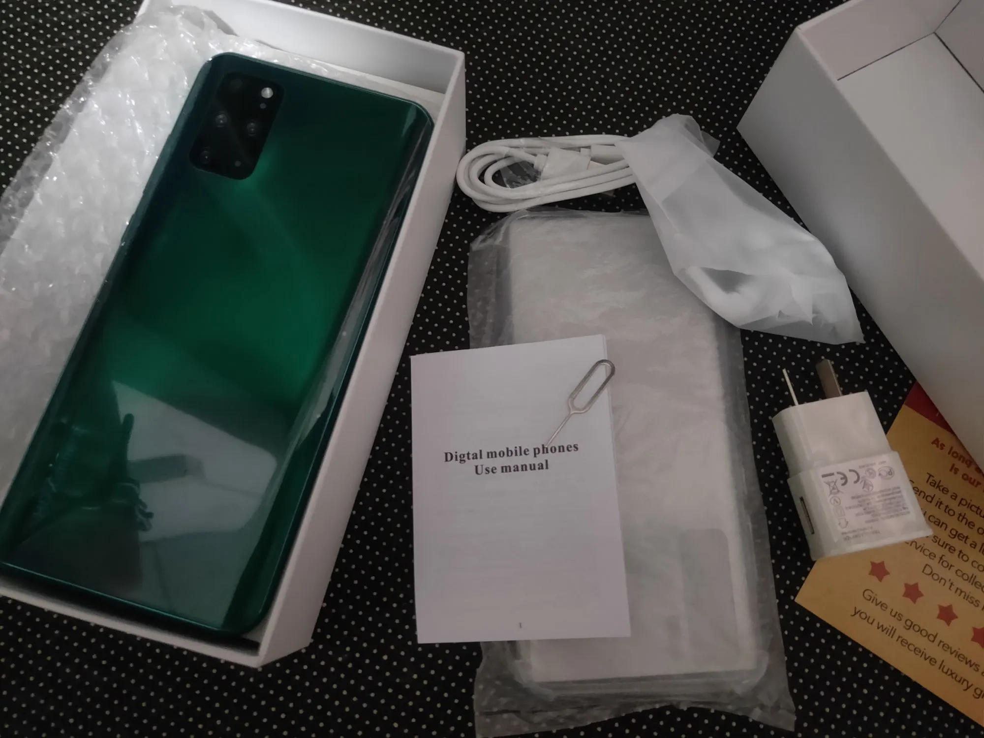 Outer packing is perfect. In a safe bubble pack, the color of the phone is not as green as in the picture, and the color is darker than in the picture. It glows green in the light. It is beautiful and corresponds to the description. Sorry for not buying 512 GB version. The price is very good. High, good choice at this price.