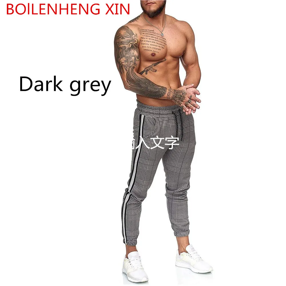 Брюки мужские длинные в полоску сбоку, спортивные клетчатые штаны, ...