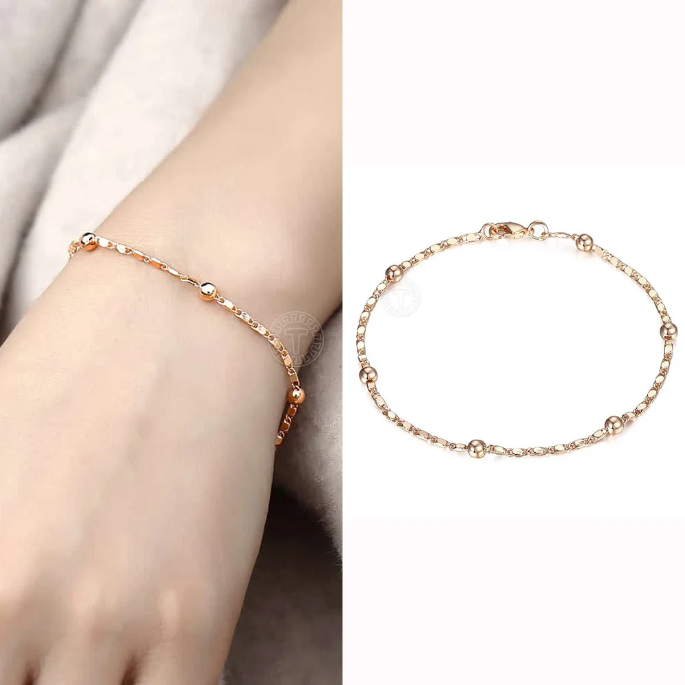 Тонкий браслет из розового золота 2 мм 585 пробы для женщин и девушек, браслет с цепочкой из бисера, 20 см, модные ювелирные изделия, подарки CB11AA