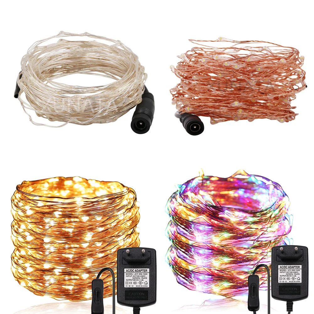 СВЕТОДИОДНАЯ Гирлянда 12 В, медная проволочная Рождественская гирлянда, 10 м, 20 м, 30 м, праздничная уличная гирлянда для дерева, украшение для свадебной вечеринки