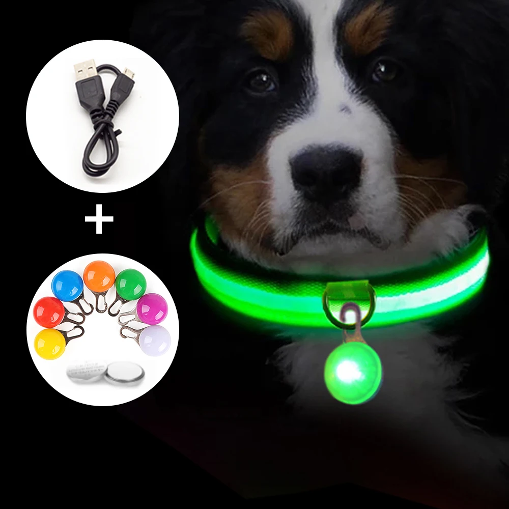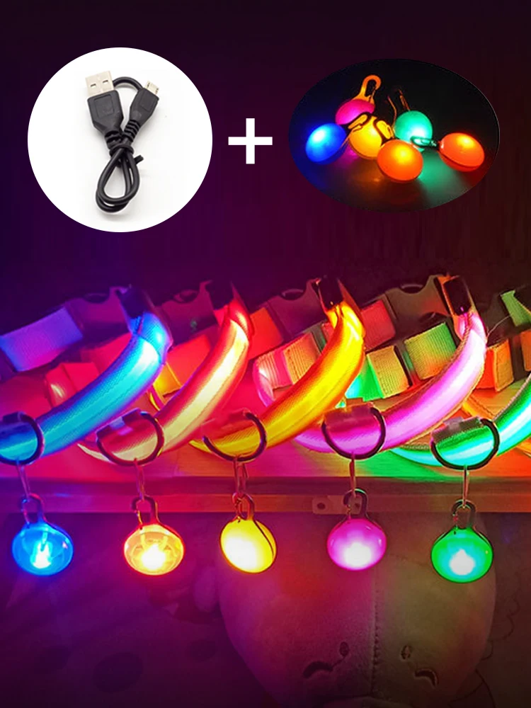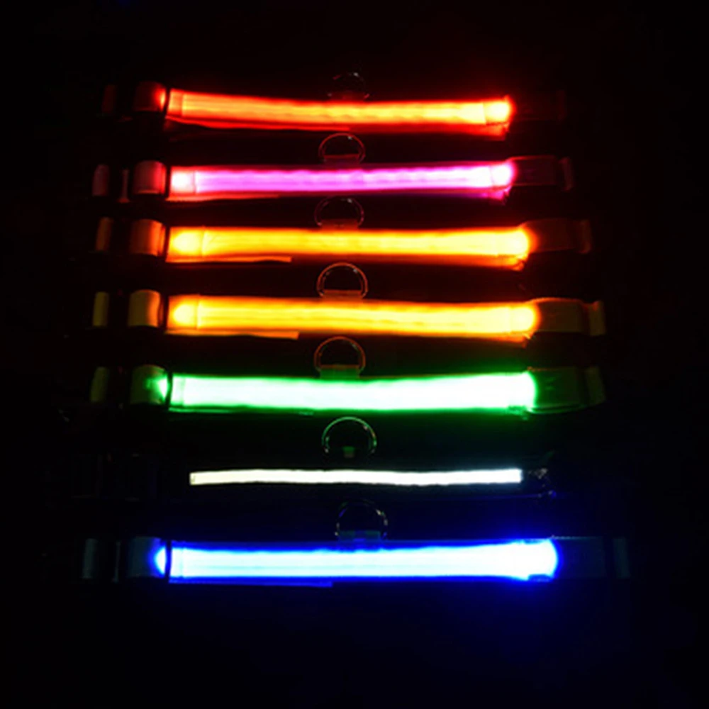 USB-зарядка, светодиодный ошейник для собаки кнопки, аккумулятор, ошейник для защиты от потери предотвращения аварии, ошейник для щенков, светящийся ошейник, ведет оптовая продажа