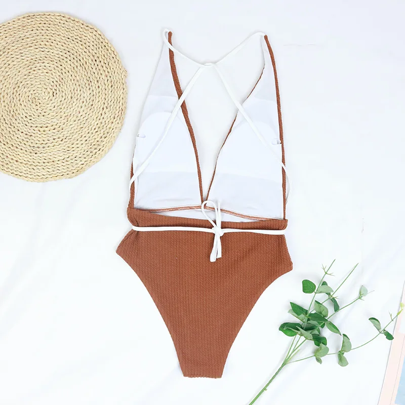 Цельный купальник, женское бикини с глубоким V-образным вырезом, перекрещивающееся на спине, бандажный купальник, сексуальные костюмы с открытой спиной, монокини, пляжные купальные костюмы