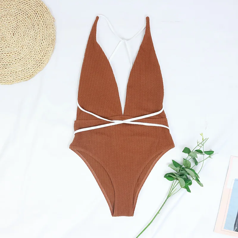 Цельный купальник, женское бикини пуш-ап с глубоким V-образным вырезом, перекрещивающееся на спине, бандажный купальник, сексуальные костюмы с открытой спиной, монокини, купальные костюмы