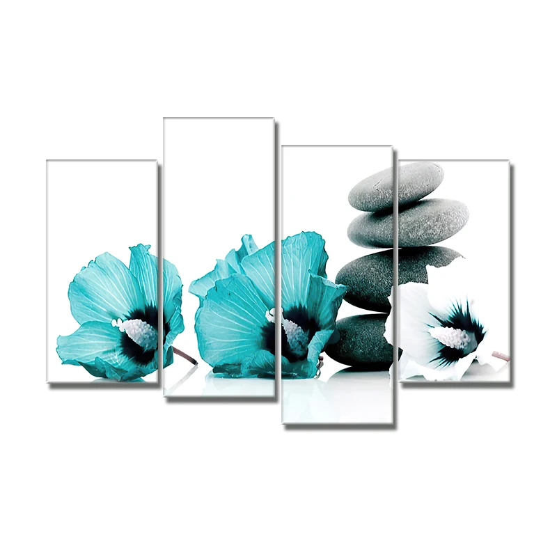 4 шт. набор, синие цветы, холст, картина, современный цветок, растение, постеры и принты, Настенная картина для гостиной, украшение для дома