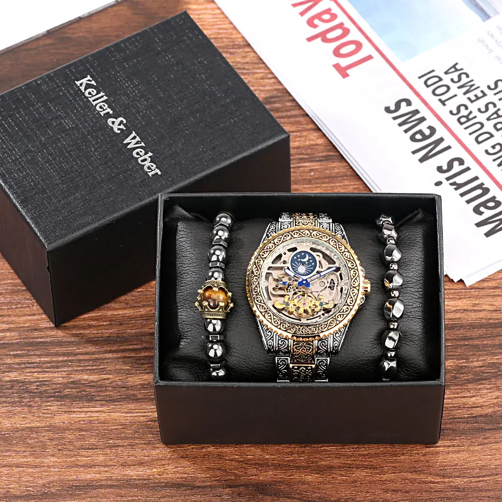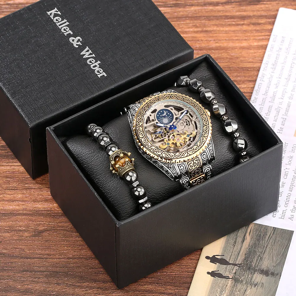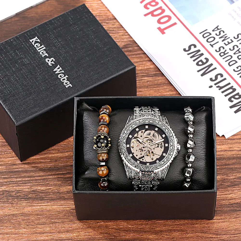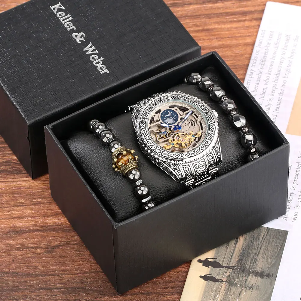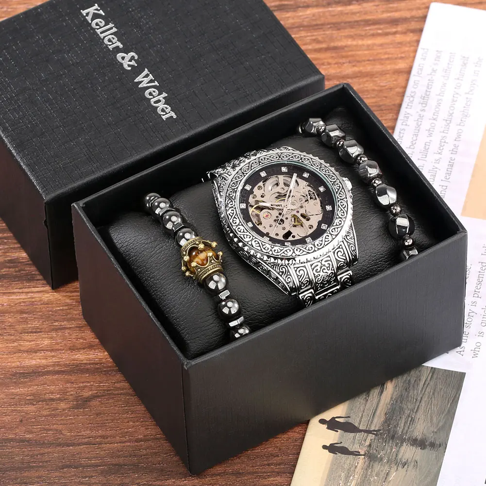 Лучший бренд, Роскошные мужские часы, браслет, подарочный набор, автоматические механические часы для мужчин, повседневные деловые наручные часы из нержавеющей стали