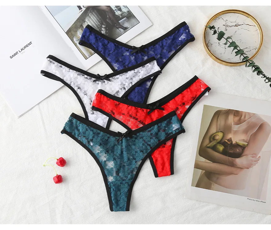 WHPC женские трусики, цветочные кружевные трусы для женщин, бесшовное женское Прозрачное нижнее белье, V-образный дизайн, стринги, трусики