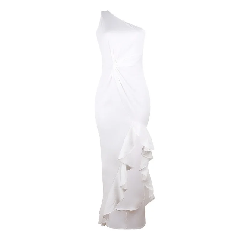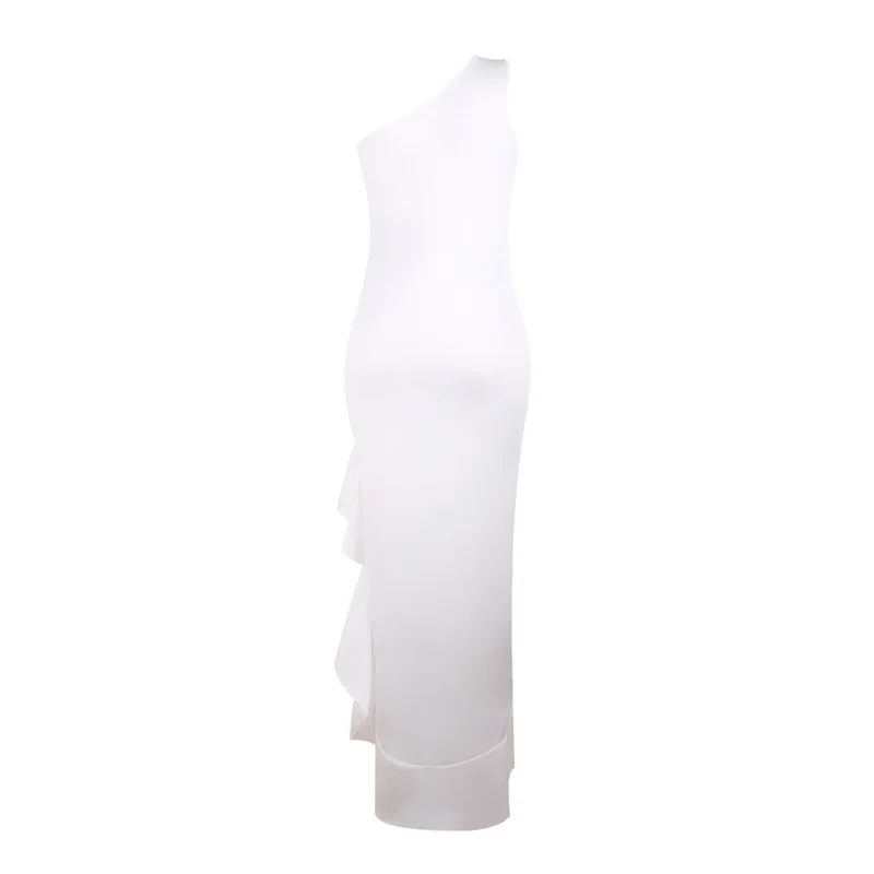 LIYONG, женское платье с оборками, платье на одно плечо, с высоким разрезом, обтягивающие сексуальные длинные платья, однотонные летние вечерние облегающие платья