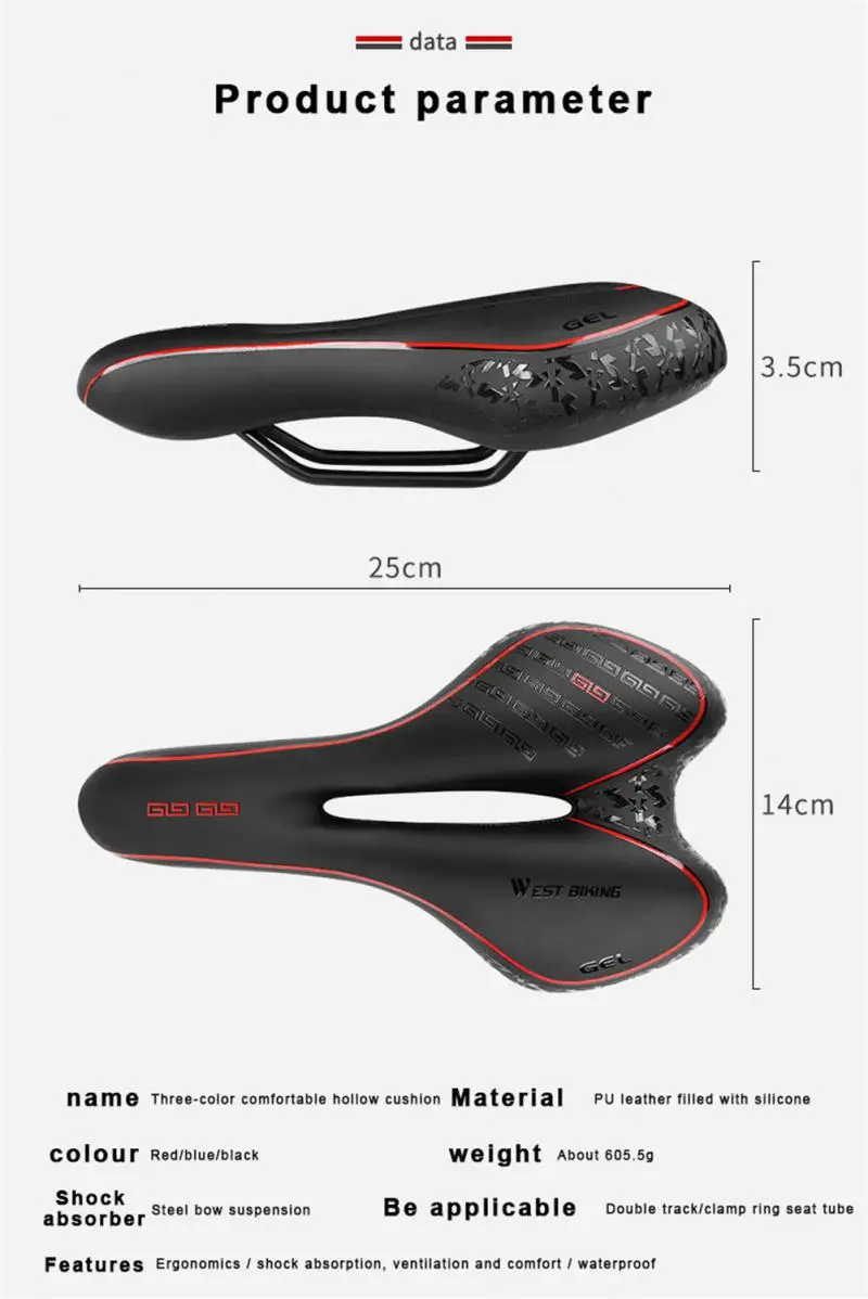 Амортизирующее ажурное седло для велосипеда, нескользящее гелевое очень мягкое седло из искусственной кожи для горного и дорожного велосипеда, Аксессуары для велосипеда