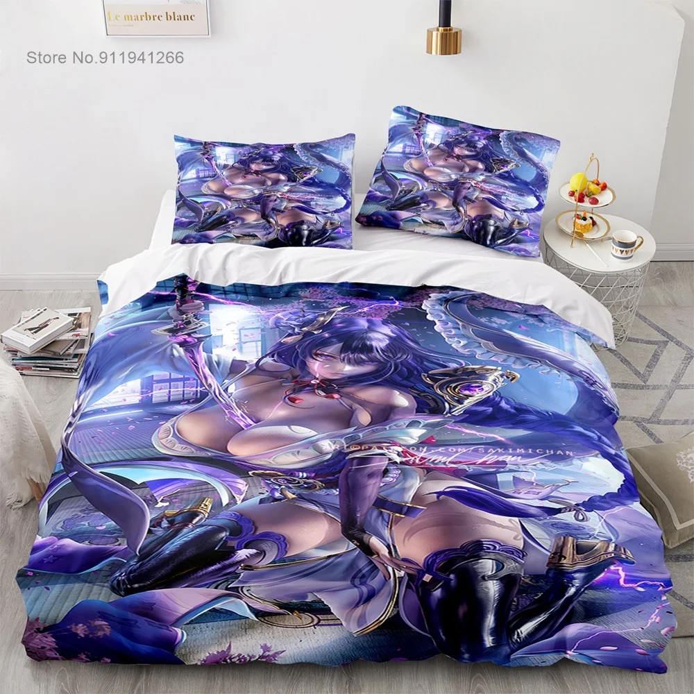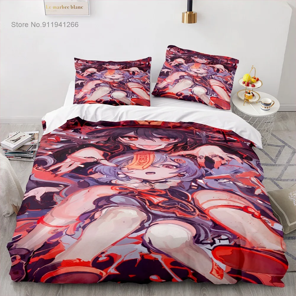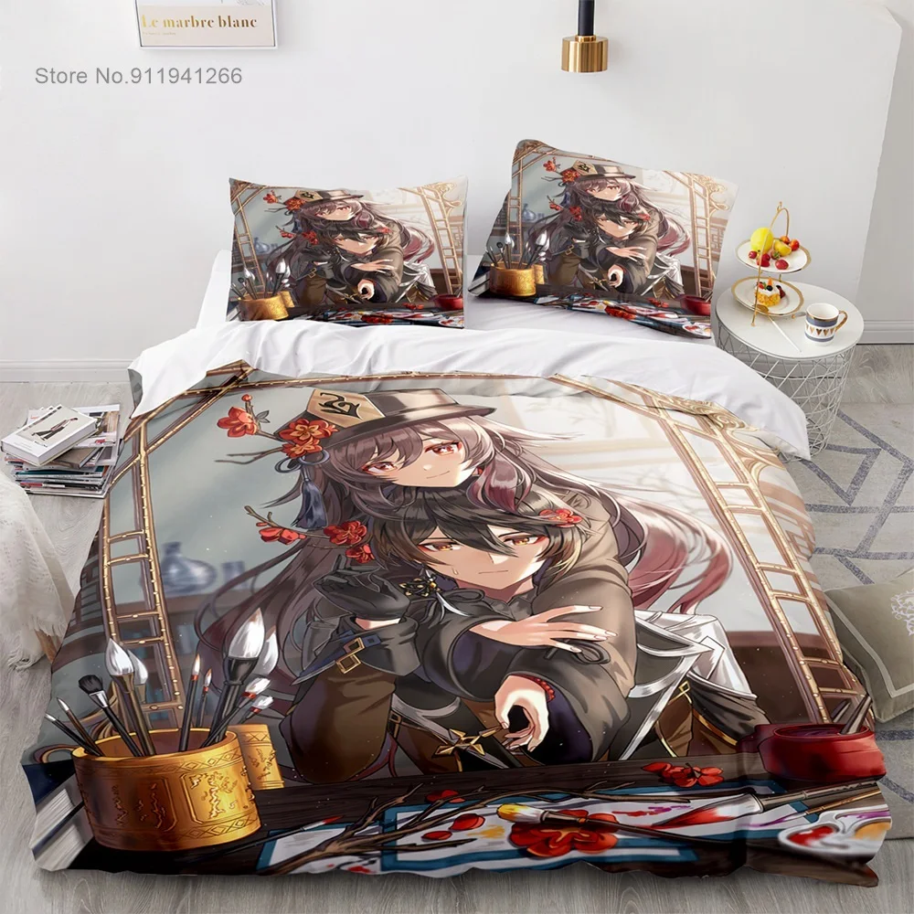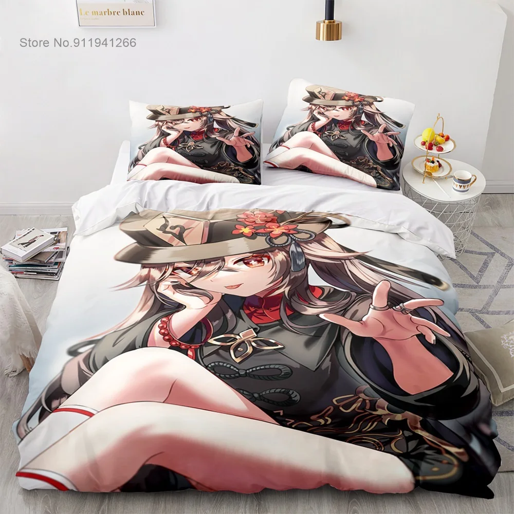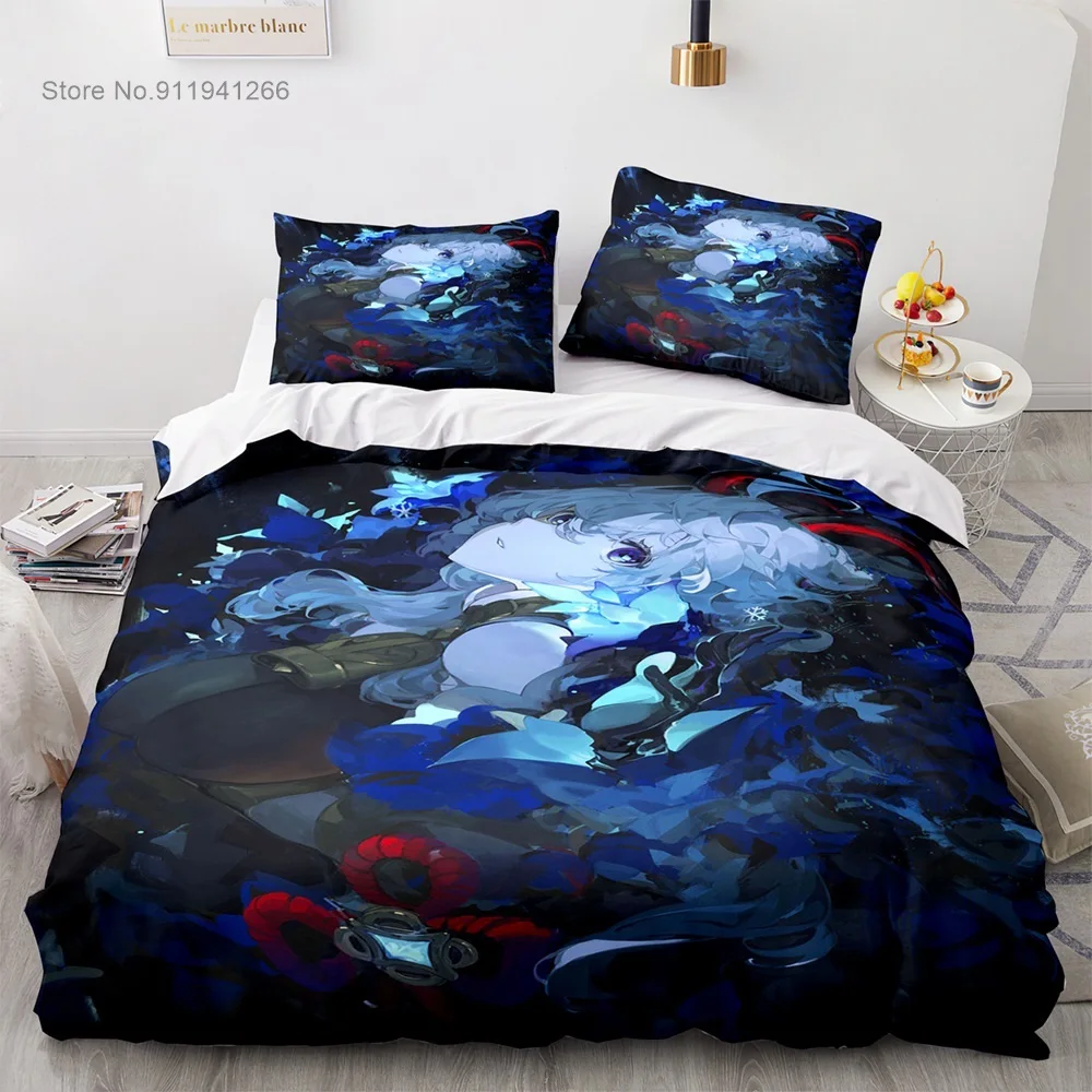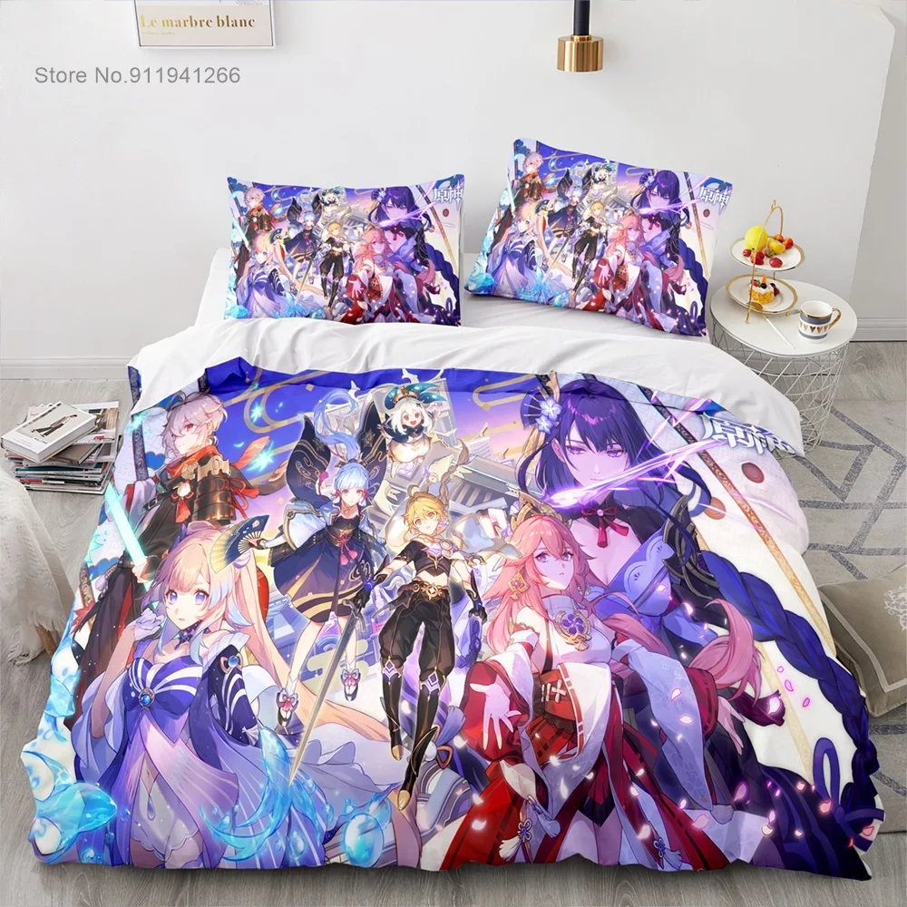 Игровой набор постельного белья Genshin, пододеяльник с мультяшным рисунком, пододеяльник, наволочка, наволочка, чехол, 3 предмета, подарки для детей, постельное белье для взрослых