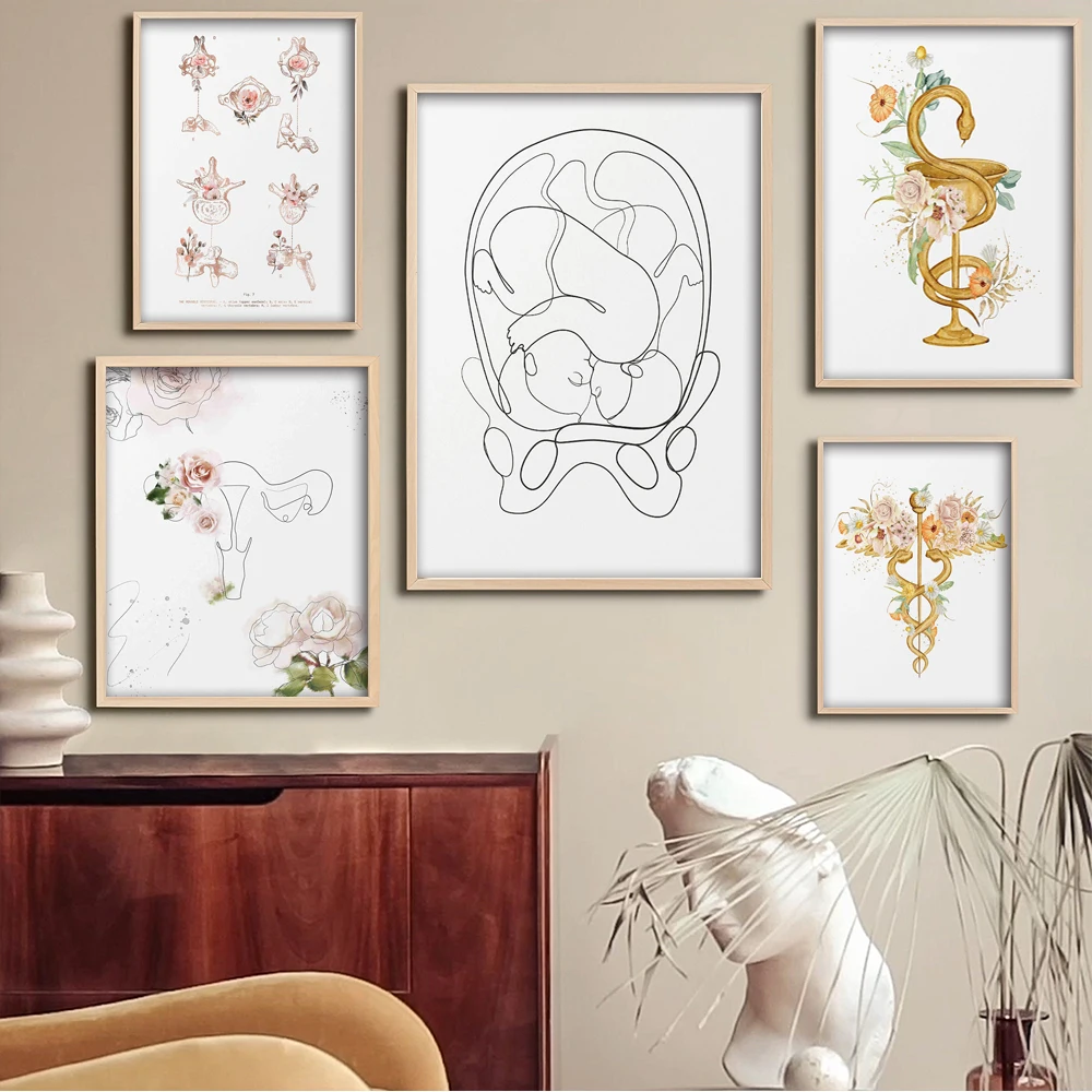 Плакат для женской репродуктивной системы матки, однострочный анатомический принт для гостиной, домашний декор