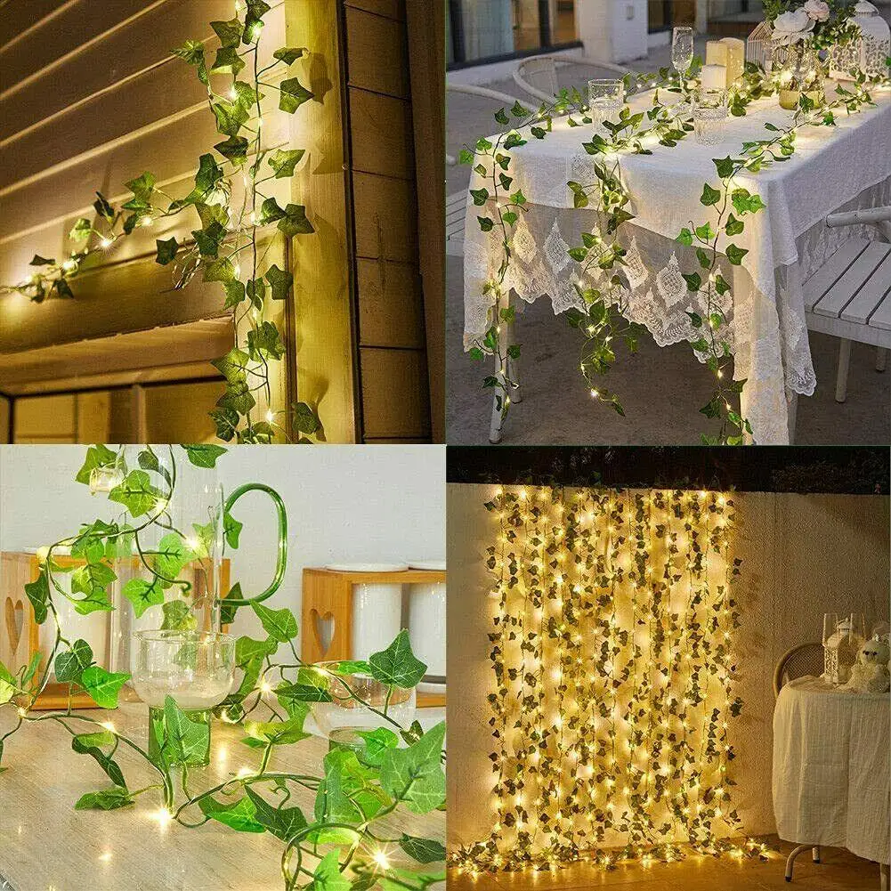 4. Романтическое Украшение: искусственные гирлянды Плющ со светодиодными лампами могут быть украшены для свадеб, фестивалей, сафари тематических вечеринок, домашних украшений, садов, ограждений, цветочных предложений, качелей, труб кондиционирования воздуха, водопроводных труб, дверные рамы, открытые провода, лестницы ждут. Его можно легко повесить на стены, окна, двери, полы, деревья, пианино, сады и т. д.