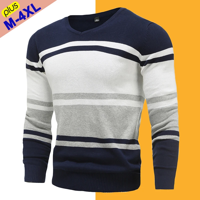 Осенние свитера, мужские пуловеры, высокое качество, хлопок, v-образный вырез, тонкий свитер, джемперы, мужской трикотаж, мужской простой стиль, Джерси размера плюс 4XL