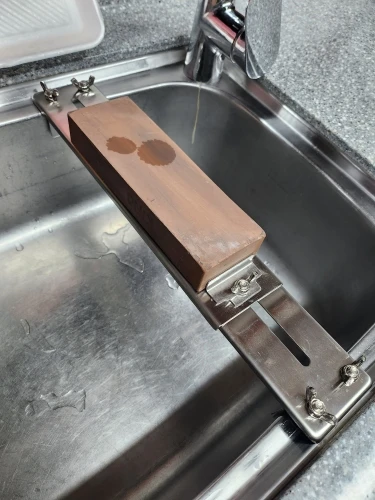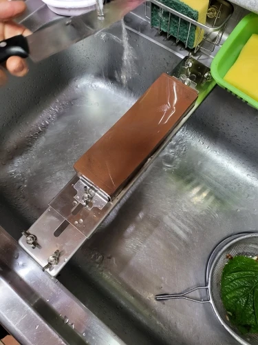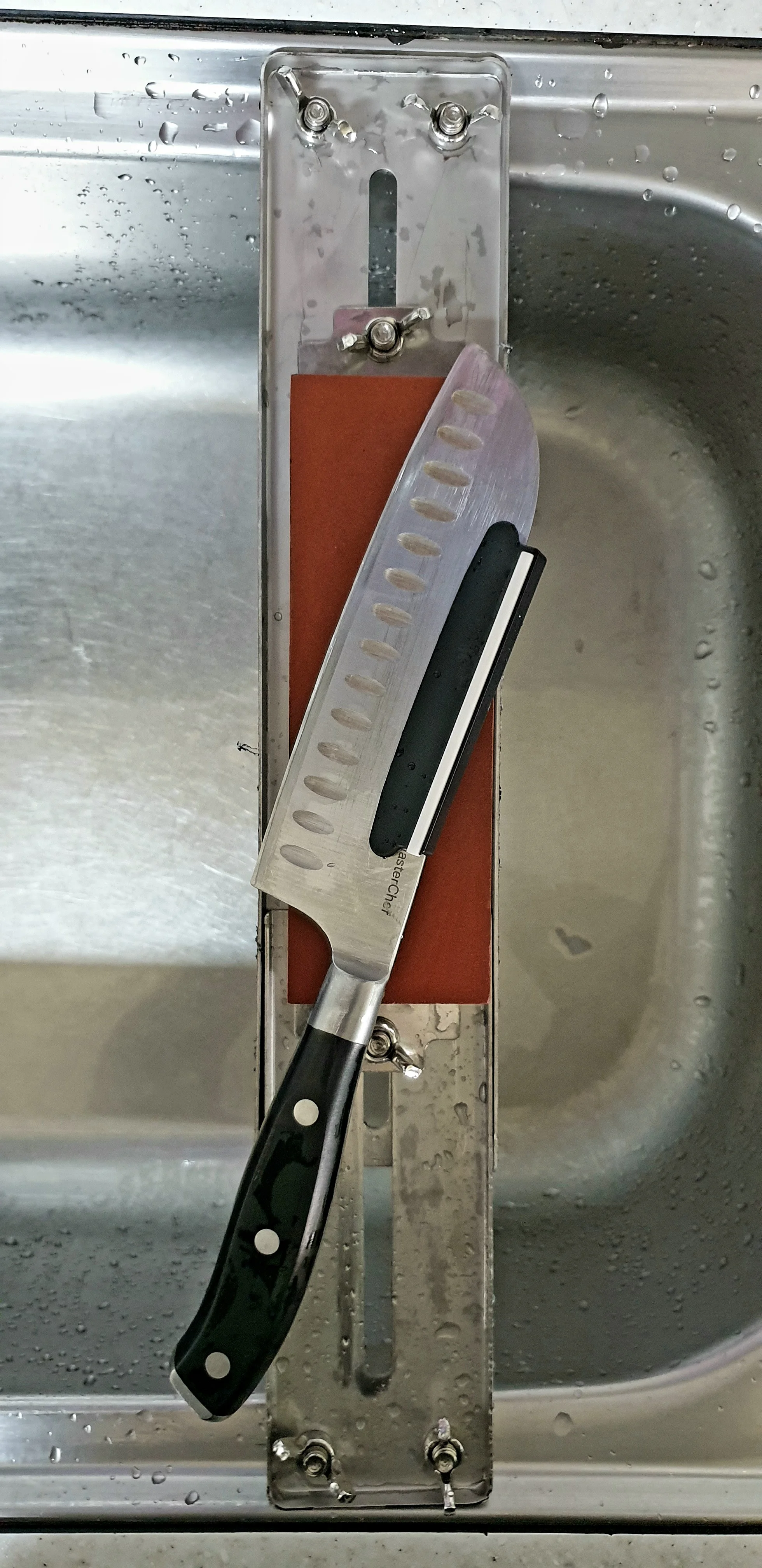 Отличная приспособа для заточки ножей! Материал толстый, не прогибается!