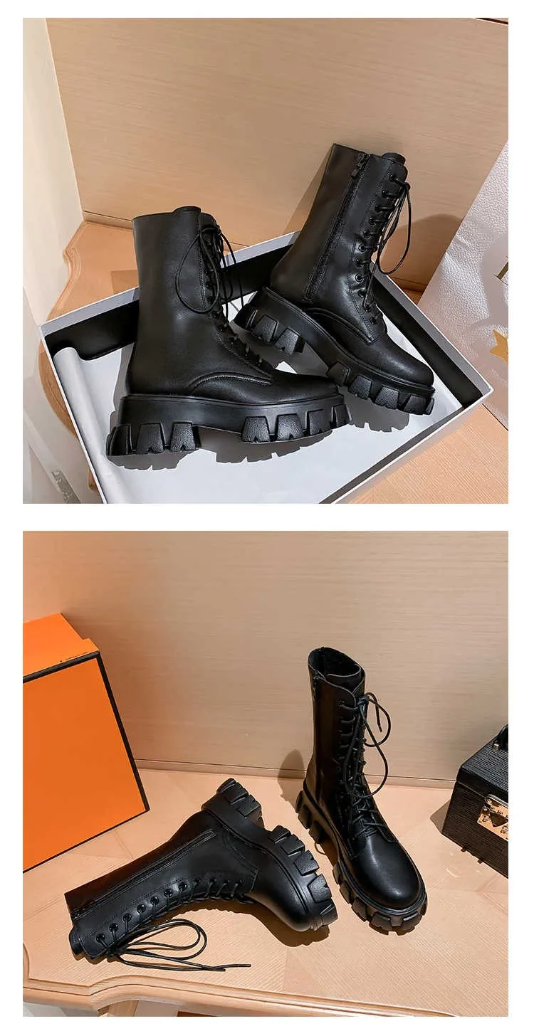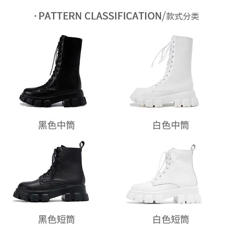 Хит продаж, осенние кожаные сапоги для женщин, черные, белые мотоци...
