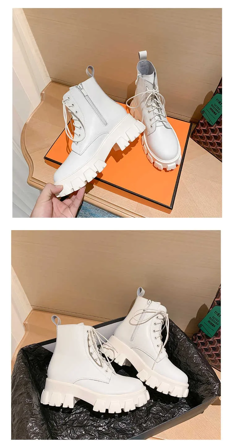 Женские мотоциклетные ботинки на платформе Rimocy, белые ботильоны ...
