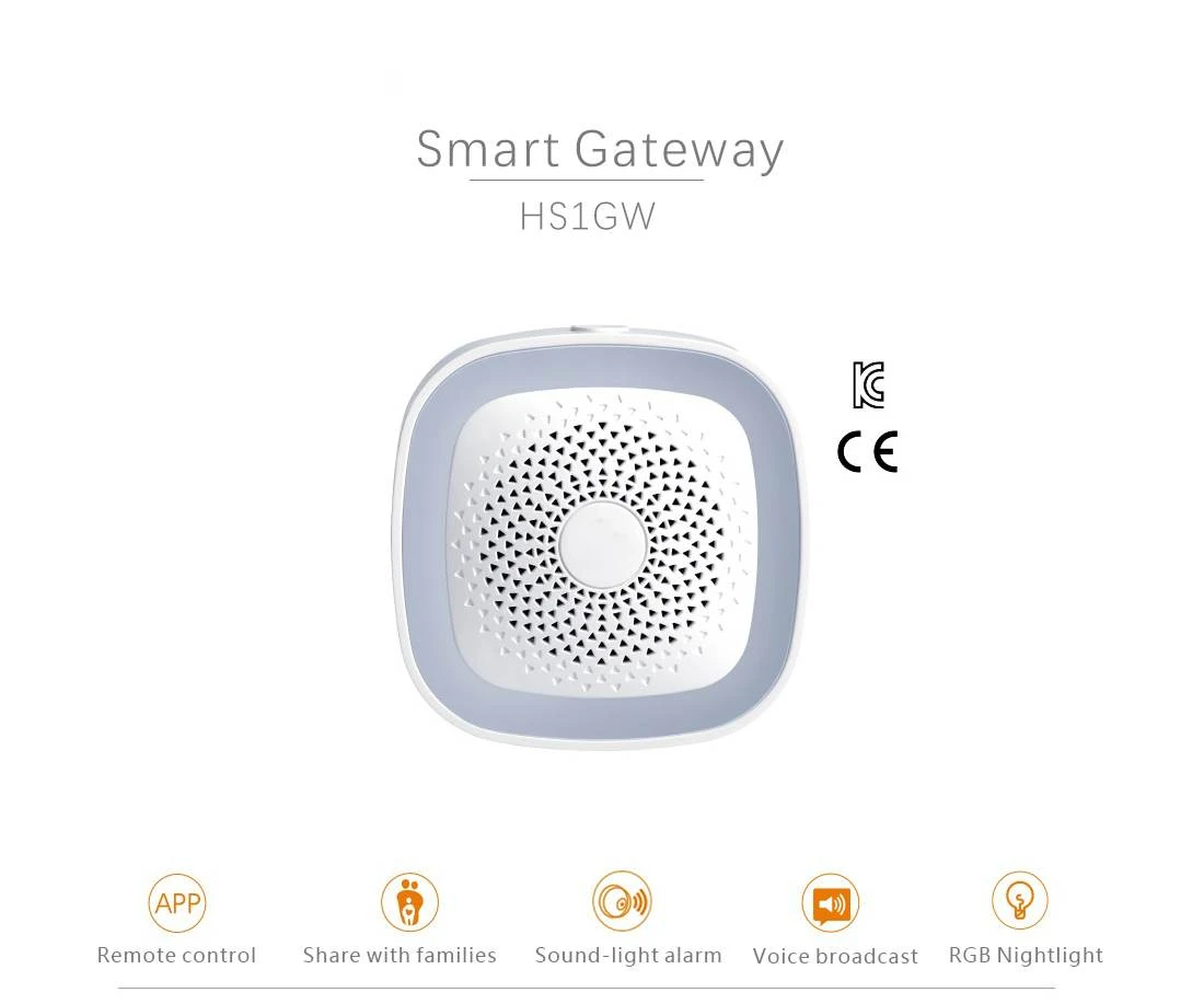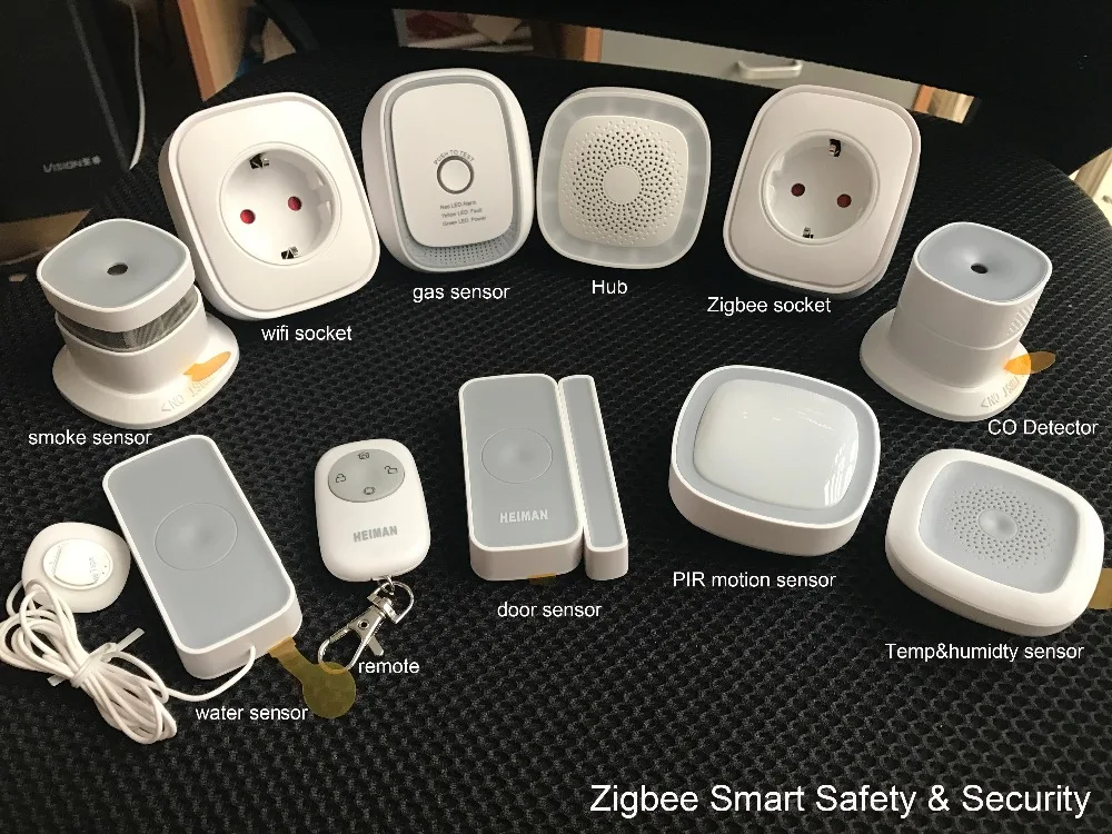 Шлюз Heiman Smart Zigbee, управление через Wi-Fi концентратор с помощью приложения Smart Zone, работает с детектором газа Smoke CO, дверной датчик, сирена