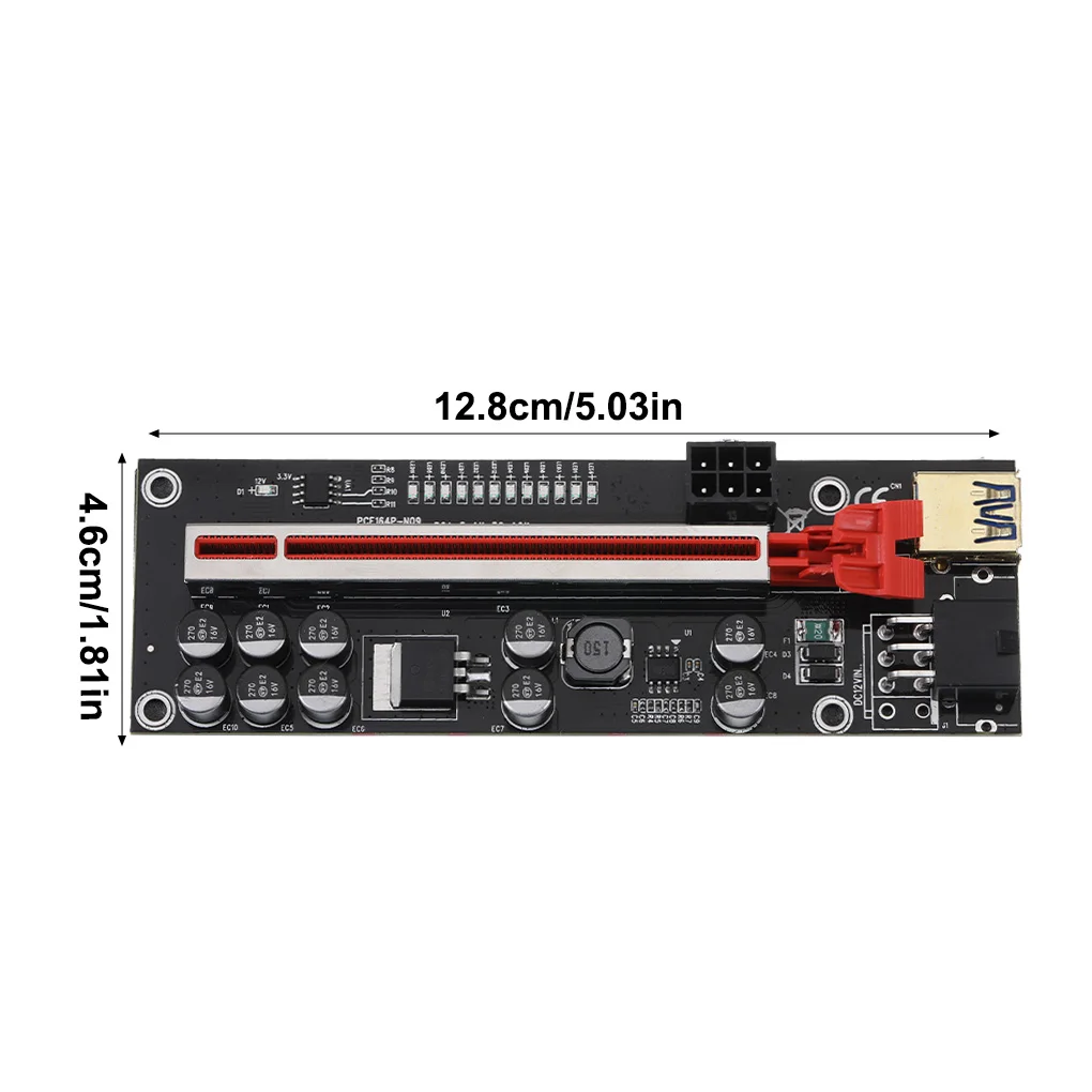 Описание:Стабильная мощность: эта переходная карта PCI-E оснащена 10 твердыми конденсаторами, благодаря которым карта может работать плавно и стабильно.Светодиодный индикатор: на этой расширительной плате PCI-E есть 13 индикаторов, что позволяет легко узнать его рабочий статус.Источник питания: с 6-контактным портом, эта переходная карта PCI-E удобна для питания ed и может уменьшить давление на материнскую плату.Быстрая скорость: поставляется с кабелем USB 3,0 для передачи данных, эта карта адаптера PCI-E 1x-16x может обеспечить хорошую производительность.Применение: эта переходная карта PCI-E позволяет подключать графическую карту для улучшения скорости хеширования майнингового компьютера.Спецификация:Длина кабеля USB: прибл. 60 см/23,62 дюйма.Цвет слота: черный.Цвет кабеля: красный.Размер (ДхШхВ): прибл. 130x45x1 5 мм/51,18x17,72x5,91 дюймов.Примечание:Может быть небольшое искажение цвета из-за различных разрешений компьютера.Возможны незначительные отклонения в фактические параметры могут отличаться из-за разных размеры руки.Посылка включает в себя:1 шт. PCI-E Riser Card (с 1 шт. PCI-E светодиодный чип, 1 шт. USB 3,0 кабель).