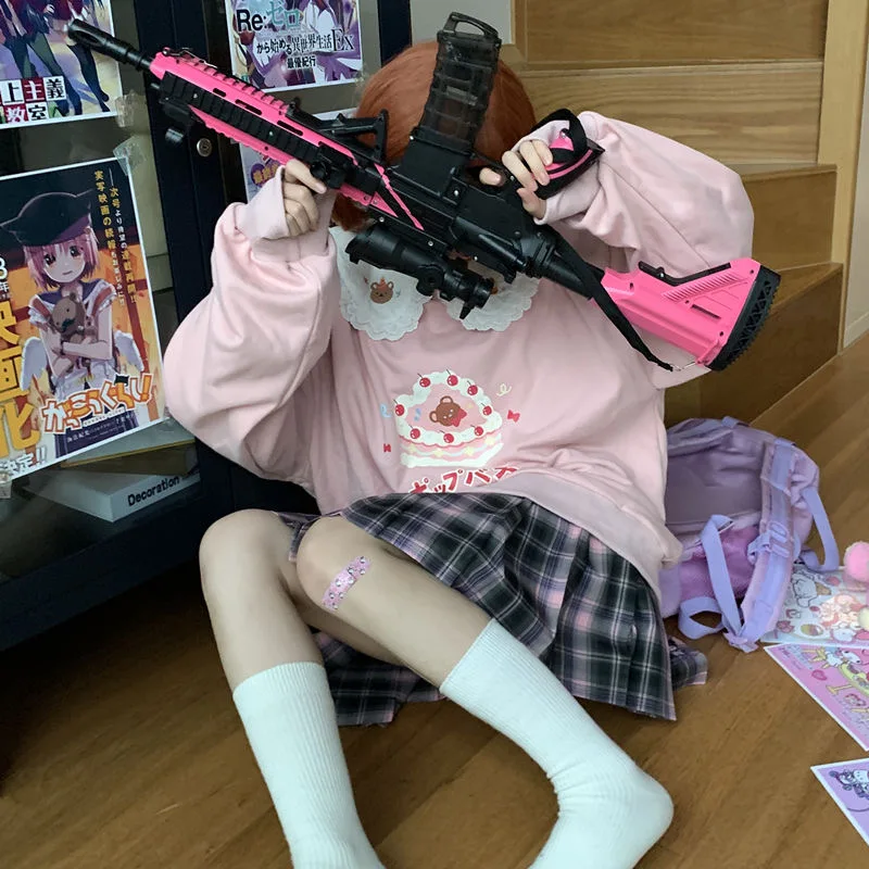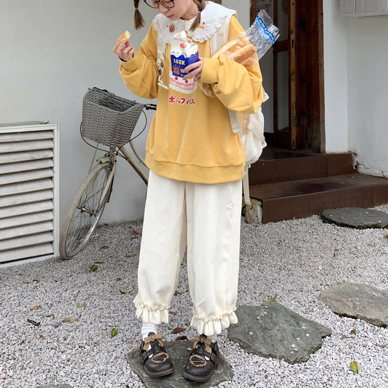 Осенний женский свободный пуловер в японском стиле Харадзюку с милым принтом торта, модные худи с длинным рукавом для студентов, Повседневная Толстовка, новинка