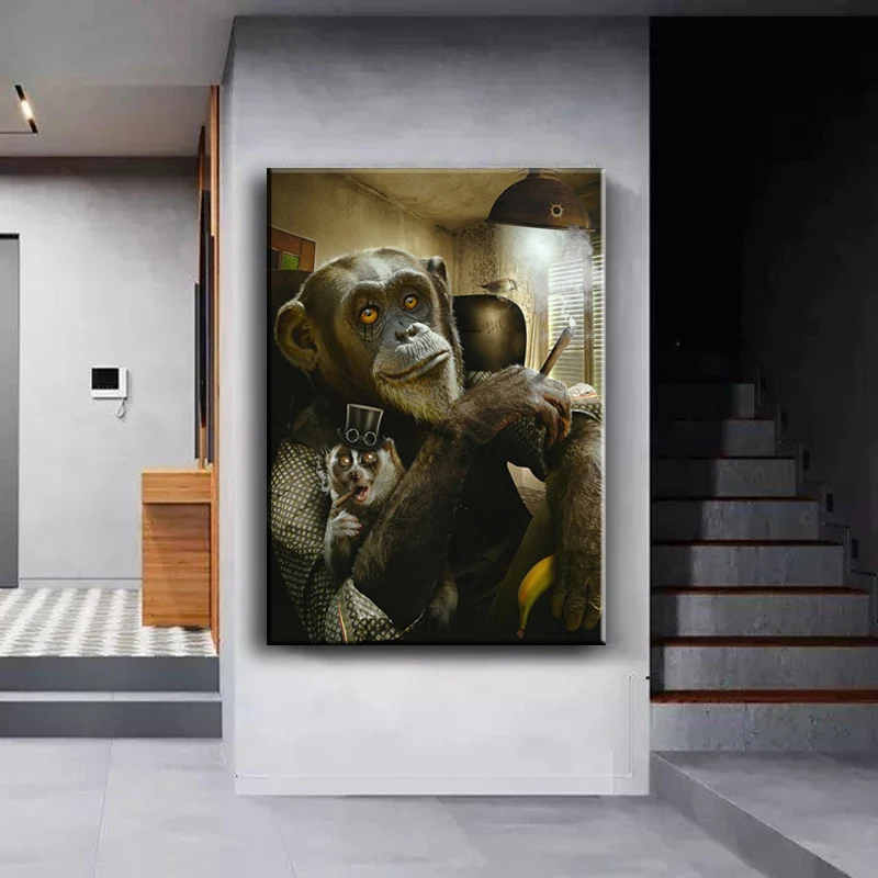 Плакат с обезьяной гориллой и курением, настенные картины для гости...