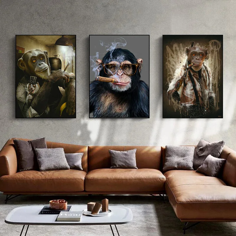 Плакаты с курительной обезьяной, настенная живопись для гостиной, С...