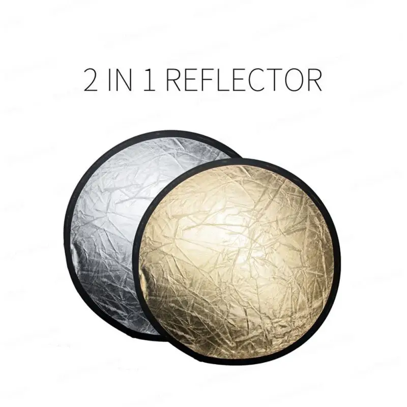 Золотой и Серебряный Отражатель также называется отражателем «Два в одном» из золота и серебра. Золотой цвет отражает теплый цвет, а Серебряный-белый светильник. Это обычно используемый светильник для фотосъемки. Это очень удобно для наружного и внутреннего использования, с одной стороны золотой и другой стороны Серебряный.