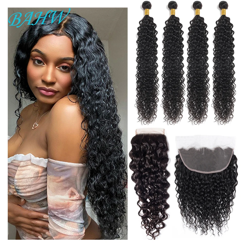 BAHW перуанские волнистые пучки волос с застежкой 8-30 дюймов натуральные волнистые волосы для наращивания Remy человеческие волосы в комплекте с фронтальной